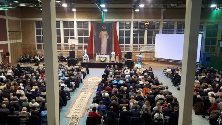 „Szkoła modlitwy” odbyła się na hali sportowej Zespołu Szkół w Sokółce. Jej organizatorem była wspólnota „Przyjaciele Oblubieńca” przy parafii pw. św. Antoniego Padewskiego w Sokółce, którą prowadzi ks. Michał Urban.