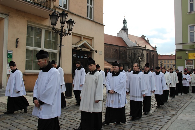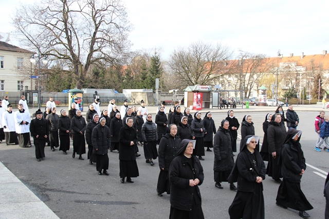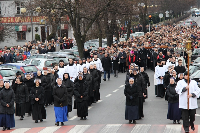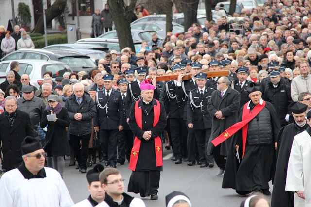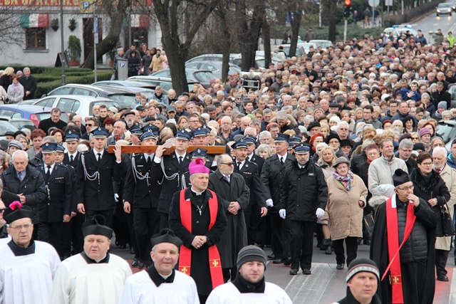 Nabożeństwo zakończyło się przy kościele Świętej Rodziny, gdzie słowo do wiernych skierował bp Łukasz Buzun. – Kończymy rozważania w tajemnicy drogi krzyżowej. Idąc za Jezusem na drodze krzyża i patrząc na swoje rany zrozumieliśmy, że sami nie poradzimy sobie z grzechami, które zraniły nas i innych. Zrozumieliśmy, że mamy uchwycić się zbawczego krzyża Jezusa, ufając Jemu, a nie samemu sobie. Prosimy Cię Panie o łaskę otwarcia naszego serca i umysłu i o to abyś prowadził nas ku zbawieniu – powiedział biskup pomocniczy diecezji kaliskiej. Podziękował kapłanom, klerykom, siostrom zakonnym i wszystkim wiernym za wspólną modlitwę. Dziękował też jezuitom za zorganizowanie drogi krzyżowej z superiorem o. Andrzejem Lemieszem, a także policji, straży miejskiej, straży pożarnej i wszystkim służbom porządkowym.