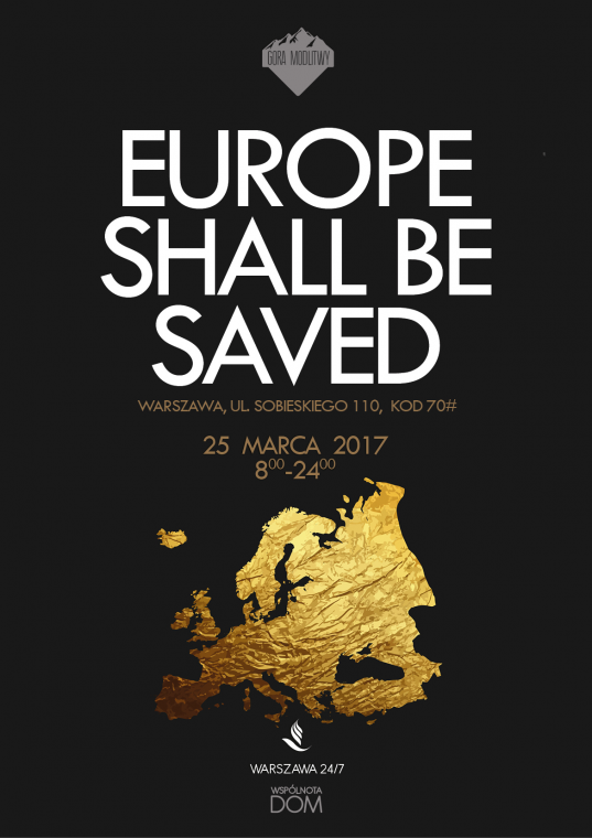 Zapraszamy na Górę Modlitwy „Europe shall be saved”. 25 marca 2017 r. w godz. 8:00-24:00. Dom Modlitwy Warszawa 24/7 ul. Sobieskiego 110 70#