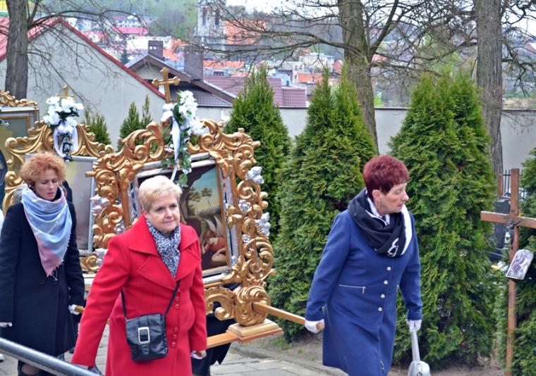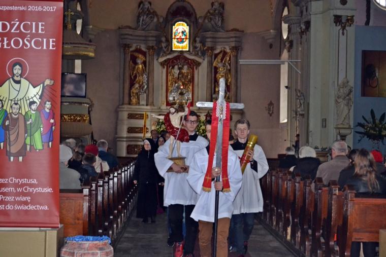 Mają Krakowianie znany chyba w całej Polsce, gromadzący tysiące wiernych odpust Emaus. Niewiele osób natomiast zapewne wie, że w niewielkiej miejscowości Mikstat( diecezja kaliska) co roku parafianie w Uroczystość Zmartwychwstania Pańskiego wyruszają w drogę do Emaus. Nie oznacza to jednak, że pielgrzymują w tym szczególnym czasie do Ziemi Świętej, chociaż zapewne wielu nosi w swym sercu pragnienie przeżycia tych dni właśnie tam. Mikstackie Emaus to procesja, która od stuleci odbywa się w tej miejscowości i prowadzi z kościoła farnego do Diecezjalnego Sanktuarium Świętego Rocha na wzgórzu za miastem. Jest znacznie krótsza niż ta, w którą wyruszyli uczniowie Jezusa z Jerozolimy do Emaus. Oni mieli do przebycia około 12 km, my około 1km. Jest jednak dla mikstackiej wspólnoty bardzo ważna, bo z jednej strony stanowi okazję do dania świadectwa wiary w zmartwychwstanie Jezusa Chrystusa, jest kontynuacją tradycji przodków, ale także czasem refleksji nad sensem życia nad tym, dokąd zmierzamy. Tradycyjnie, mikstaccy parafianie zebrali się w kościele farnym, by wyruszyć w procesji do Emaus. Ponieważ parafianie przygotowują się do Święta Miłosierdzia Bożego poprzez udział w nowennie, odmówiona została Koronka do Miłosierdzia Bożego. Następnie z paschałem, figurą Chrystusa zmartwychwstałego, z chorągwiami i feretronami wyruszyliśmy w kierunki Sanktuarium. W procesji obok kapłanów posługujących w naszej parafii ks. kan. Krzysztofem Ordziniakiem, ks. Krzysztofem Lipińskim uczestniczyli także ks. Ryszard Zieliński i ks. Mateusz Puchała. W rytm dźwięków w wykonaniu naszej parafialnej orkiestry pokonywaliśmy naszą drogę. Sanktuarium położone jest w centralnym punkcie cmentarza. Tu wielu uczestników procesji ma groby swoich bliskich. Dla nich przesłanie: Pan zmartwychwstał! nabiera tu szczególnego znaczenia. Daje nadzieję na spotkanie z tymi, którzy poprzedzili nas w pielgrzymce do Ojczyzny niebieskiej. W Uroczystość Zmartwychwstania Pańskiego orkiestra obchodzi rocznicę powstania. Warto dodać, że już 47. Stało się tradycją, że po dotarciu przed Sanktuarium uczestnicy mikstackiej procesji do Emaus zatrzymują się przy grobie założyciela orkiestry ks. kan. Bernarda Langkaua oraz jego następcy ks. kan. Kazimierza Mądrego na chwilę modlitwy. Modlitwie przy grobach kapłanów przewodniczył ks. kan. Krzysztof Ordziniak. Członkowie orkiestry złożyli w tym czasie znicze. Następnie w Sanktuarium odprawione zostały uroczyste nieszpory podczas których odczytana została Ewangelia mówiąca o uczniach zmierzających do Emaus. Słowa rozważania skierował do zebranych ks. Krzysztof Lipiński. Myślą przewodnią rozważania były słowa skierowane przez uczniów do Jezusa „ Ty jesteś chyba jedynym, który nie wie co w tych dniach wydarzyła się w Jeruzalem”. Kaznodzieje podkreślił, że opuszczenie Jezusa przez wszystkich. Jak podkreślił tak wielu było świadków czynionych przez niego znaków, cudów, a mimo to w nie zrobili niczego, gdy Jezus był krzyżowany. Ks. Krzysztof zaakcentował, że mimo tego Jezus nie odwrócił się ze swoją miłością od człowieka. Podkreślił, że także nam często wydaje się, że wiemy najlepiej jak powinno wyglądać nasze życie. To czego, jak wskazał kaznodzieja, najbardziej w życiu potrzebujemy to obecności Pana Jezusa. Tylko Jezus jest tym, który potrafi dać odpowiedź na wszystkie nasze pytania, a tych pytań jest w naszym życiu bardzo wiele kontynuował kaznodzieja. Postawą swego życia mówimy wielokrotnie „ Panie Boże, Ty się na tym nie znasz bo jak byś się znał, to by było inaczej” stwierdził ks. Krzysztof. Zaapelował do zebranych, by nie próbowali nigdy sami udzielać sobie odpowiedzi, wyjaśniać trudnych, niezrozumiałych spraw sami. Podkreślił, że Jezus jest obok nas, jest w nas, ale my możemy go nie dostrzeć. Kaznodzieja zachęcał do słuchania Boga. Wskazał, że uczniowie byli przy Jezusie, widzieli znaki, cuda, słuchali Jego słów, ale dopiero spotkanie ze Zmartwychwstałym Chrystusem sprawia, że ich wiara staje się wiarą żywą. Kaznodzieja zachęcając do refleksji, dlaczego Święta Zmartwychwstania są tak ważne powiedział: „ Te święta są okazją do tego, aby jeśli ktoś doświadczył tego, że Jezus jest naprawdę Bogiem żywym, to żeby swoją wiarę umocnił, jeszcze bardziej ją ożywił. A jeśli czasami w naszym życiu wiara jest ospała, przygaszona to jest to okazja do tego, żeby się ożywiła, a wraz z tą żywą wiarą zobaczymy, że Pan Bóg ukazuje nam odpowiedzi na wszystkie pytania naszego życia” .Ważne jest jednak podkreślił kaznodzieja byśmy chcieli tych odpowiedzi słuchać. Kończąc rozważanie ks. wikariusz wskazał: „ Jezus pokazał swym uczniom, że On dokładnie wiedział, co się tam w Jerozolimie wydarzyło, bo to on był właśnie w centrum tego wydarzenia. Pan przygotował dla nas stół, wielu skorzystało z tego zaproszenia. Mikstacka droga do Emaus A. D. 2017 była kolejną okazją do realizacji hasła roku duszpasterskiego „ Idźcie i głoście”. Szli i głosili napotykanym ludziom mikstaccy parafianie: Jezus żyje, zmartwychwstał, prawdziwie zmartwychwstał!