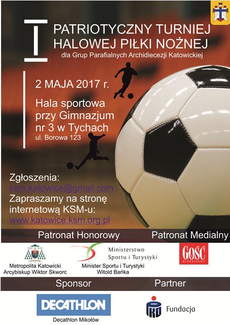 Patronat honorowy nad wydarzeniem objęli abp Wiktor Skworc - metropolita katowicki i Witold Bańka - Minister Sportu i Turystyki. Organizatorem turnieju jest Katolickie Stowarzyszenie Młodzieży Archidiecezji Katowickiej. Partnerem wydarzenia jest Fundacja PKO Banku Polskiego.