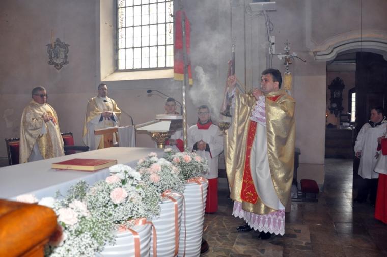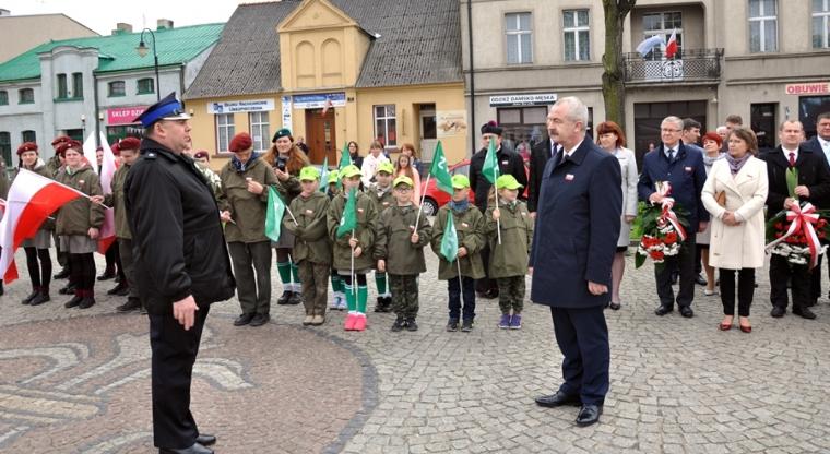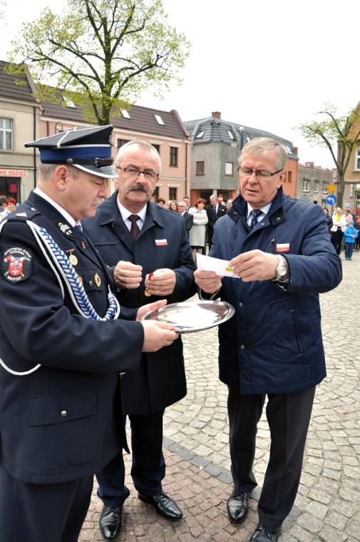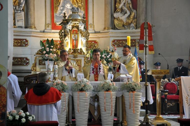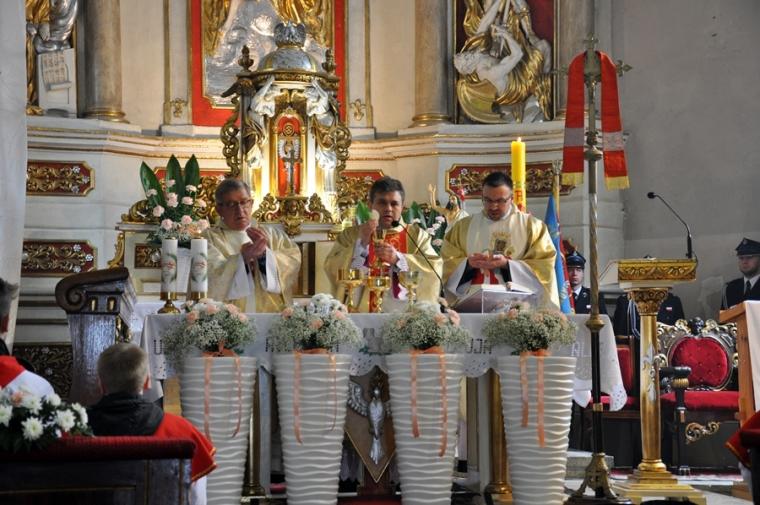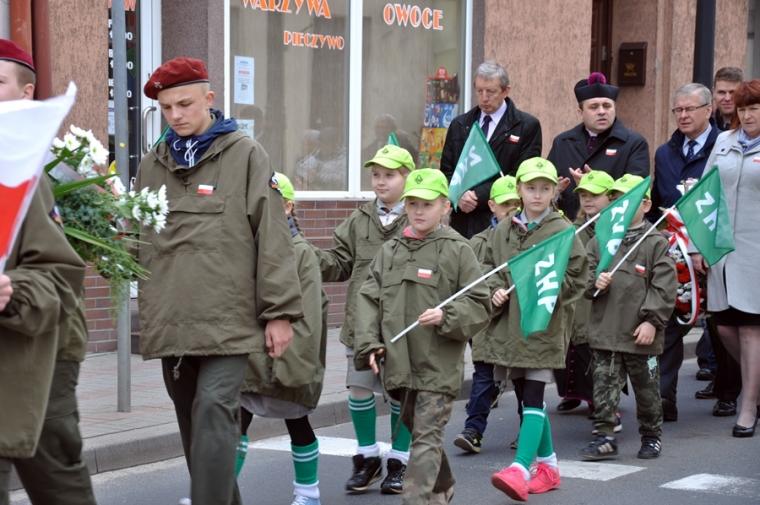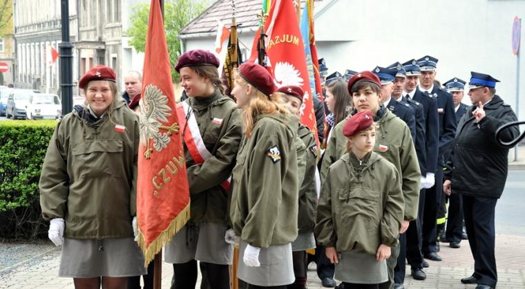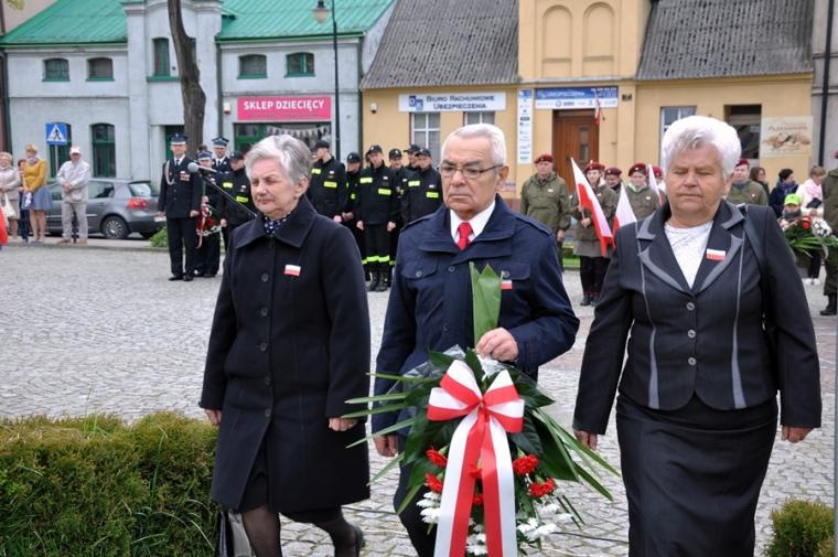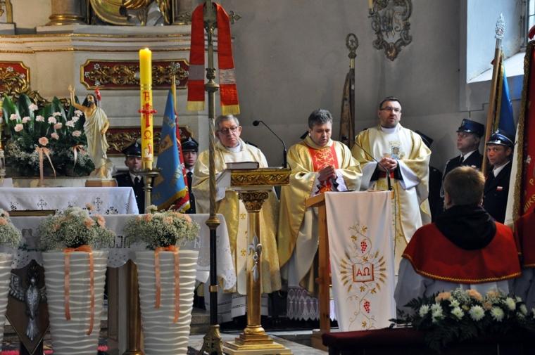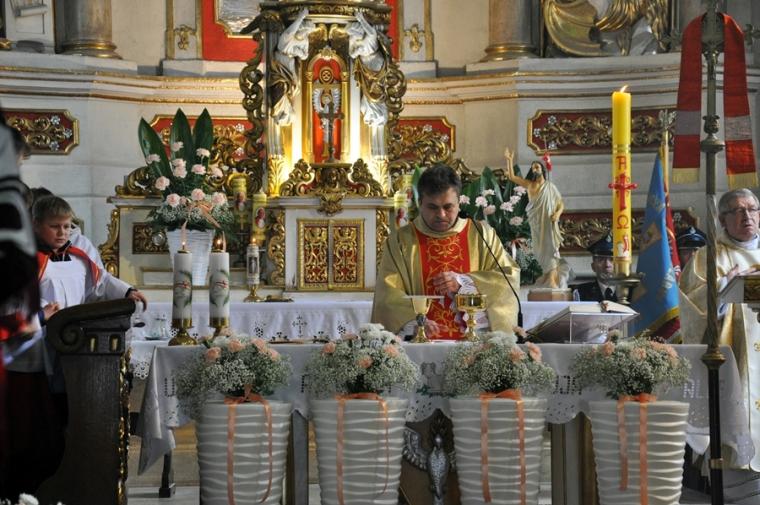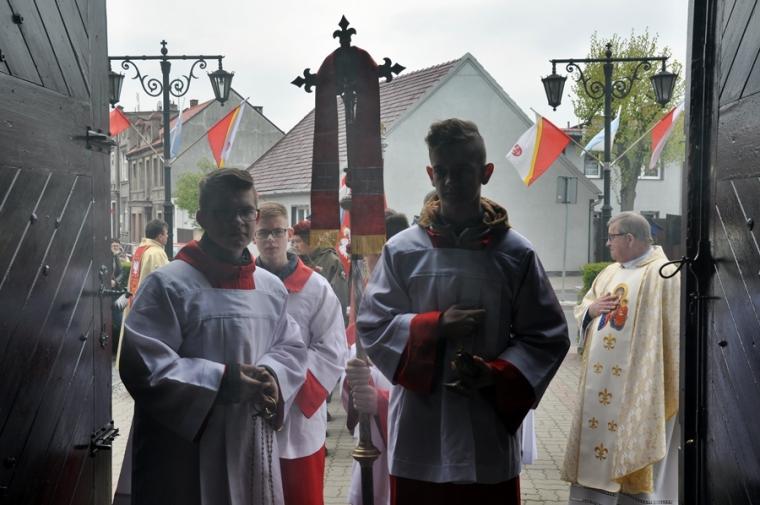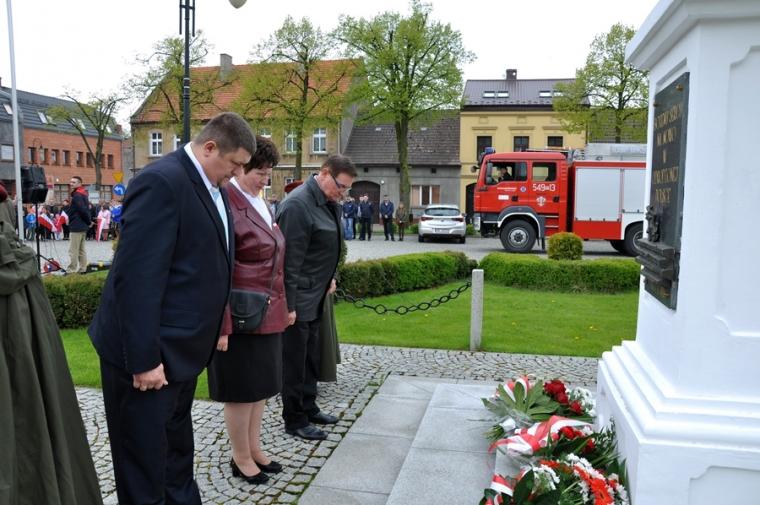 Przy ołtarzu stanęło trzech kapłanów. Ks. kan. Krzysztof Ordziniak modlił się o pomyślność dla naszej Ojczyzny Polski, ale także dla naszej małej Ojczyzny, której jak podkreślił od dziesięciu lat patronuje św. Roch. Ks. kan. Grzegorz Klapa polecał prosił o radość wieczną dla wszystkich poległych w obronie Ojczyzny, ks. wikariusz Krzysztof Lipiński modlił się  za zmarłych polecanych w wymieniankach. Jak podkreślił główny celebrans, to często właśnie tym osobom, naszym rodzicom, dziadkom zawdzięczamy przekaz pięknych tradycji, które wyróżniają naszą społeczność. Homili podczas tej Mszy św. wygłosił ks. kan. Krzysztof Ordziniak. Rozpoczynając rozważanie przywołał  słowa Adama Mickiewicza z „Pana Tadeusza” skierowane do Matki Bożej wskazał, że  w nich zawiera się  nasza Ojczyzna – Polska. Kontynuując podkreślił, że Polacy zawsze szanowali tych, którzy czcili Matkę Bożą Królową Polski. Przywołał opis konania Janusza Radziwiłła. Kaznodzieja podkreślił, że także współcześnie uciekamy się pod opiekę Maryi Królowej Polski. Wskazał, że szczególnym zagrożeniem dla religii i pokoju w Ojczyźnie jest grzech. Zwrócił uwagę, że dla rozwoju Ojczyzny konieczne jest nasze nawrócenie, które możliwe jest tylko wtedy gdy odkryjemy grzech, przyznamy się do niego, a następnie podejmiemy z nim walkę. Ks. kan. Krzysztof zachęcał zebranych o ożywienie nabożeństw do Matki Bożej.Podkreślił, że z przeżywaną uroczystością związane są trzy kwestie:„1)Maryja od wieków jest Królową Polski, co oznacza, że na tej ziemi ma panować prawo jej Syna, prawo Boże; 2) Konstytucja 3 Maja, pierwsza nowoczesna ustawa zasadnicza Europy, oparta na prawie Bożym, powstała tu, w Polsce; 3) Najgłębszy związek wiary  i patriotyzmu, związek narodu- suwerena i Kościoła przejawia się właśnie w święcie 3 Maja”. W dalszej części homilii kaznodzieja nawiązał do dokumentu Episkopatu Polski przygotowany przez Radę ds. Społecznych „ Chrześcijański kształt patriotyzmu”. Nawiązując do punktu 5 wymienionego dokumentu ks. kan. nawiązał do znaczenia patriotyzmu lokalnego. Podkreślając  rolę wielu pokoleń naszych przodków, którzy troszczyli się o przekaz tradycji odpustowych wskazał, że w tym także wyraża się patriotyzm. Zwrócił uwagę na jubileusz 10- lecia ustanowienia patronatu św. Rocha nad miastem, który będziemy przeżywali  w tym roku. Podkreślił, że miasto ma swoją flagę  i na dzień patrona miasta nasze domostwa są nią dekorowane. Kończąc homilię kaznodzieja skierował  słowa zachęty do wszystkich, którzy troszczą się o losy Polski, aby „ nie ustawali w kształtowaniu szlachetnego, opartego o chrześcijańską miłość bliźniego polskiego patriotyzmu”. Po końcowym błogosławieństwie została odśpiewana pieśń „Boże coś Polskę…”. Następnie uczestnicy uroczystości udali się na Rynek pod pomnik Najświętszego Serca Jezusowego.    Po wciągnięciu flagi na maszt przez przedstawicieli harcerzy i odśpiewaniu hymnu przez zebranych okolicznościowe przemówienie wygłosił Pan Burmistrz Henryk Zieliński.  Przypomniał w nim  udział Mikstaczan w upowszechnianiu Konstytucji 3. Maja. W związku ze zbliżającym się świętem patronalnym strażaków skierował do nich słowa podziękowania za ich służbę oraz złożył im życzenia.  Po okolicznościowym przemówieniu nadszedł czas na składanie kwiatów pod pomnikiem przez przedstawicieli władz, mieszkańców poszczególnych miejscowości, druhów strażaków, przedstawicieli organizacji. Podczas uroczystości pod figura Najświętszego Serca Jezusowego młodzi strażacy złożyli ślubowanie. W związku ze zbliżającym się Dniem Strażaka wręczone zostały Druhom Strażakom medale i odznaczenia. Na zakończenie uroczystości głos zabrał p. Lech Janicki Starosta Powiatu Ostrzeszowskiego, który wyraził uznanie dla organizacji uroczystości zarówno w kościele, jak i na mikstackim Rynku. Wyprowadzenie pocztów sztandarowych zakończyło uroczystość na Rynku. Uświetniła ją Orkiestra Parafialna. Grupą, którą szczególnie warto zauważyć i podkreślić  jej  zaangażowanie w uroczystości o charakterze religijnym i patriotycznym   w naszym miasteczku  są harcerze z 1 Szczepu ZHP Ziemi Mikstackiej im. Powstańców Wielkopolskich.