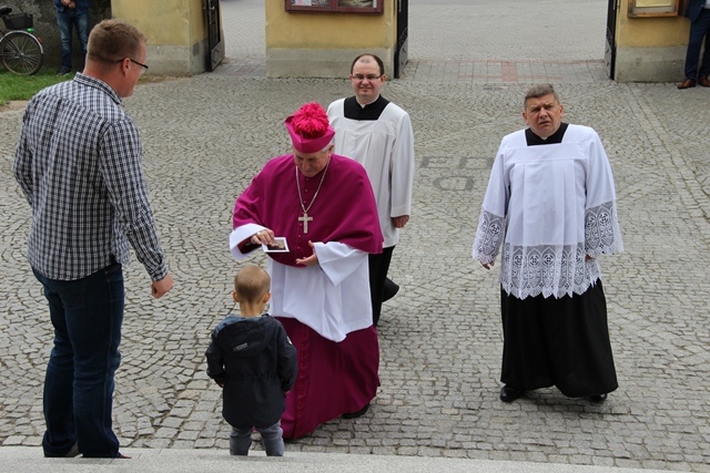 W ramach wizytacji ks. biskup Edward Janiak udzielił błogosławieństwa dzieciom, które w tym i minionym roku przystąpiły do I Komunii Świętej, odmówił modlitwę na cmentarzu, odwiedził chorą parafiankę, spotkał się z przedstawicielami grup duszpasterskich oraz członkami rady parafialnej.