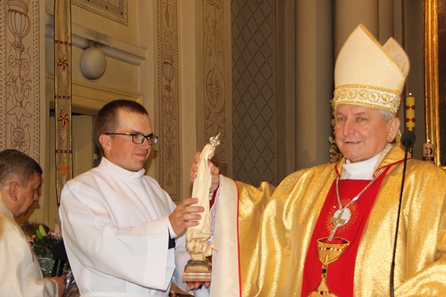 Na pamiątkę wizyty proboszcz goliszewskiej parafii przekazał ks. biskupowi Edwardowi figurę Matki Bożej Fatimskiej przywiezioną z Fatimy.