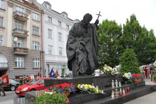 Po Mszy św. wierni przeszli pod figurę św. Jana Pawła II, gdzie odmówiono modlitwę, złożono kwiaty i zapalono znicze.