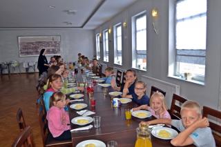 W tym dniu odbyło się szóste spotkanie uczestników Szkoły Świętego Rocha. Okazało się, że i w sobotni poranek wielu młodych na nie przybyło, więc pewnie odbywające się w niej zajęcia są dla nich atrakcyjne. To spotkanie rozpoczęło się u posługujących w mikstackiej wspólnocie parafialnej Sióstr Franciszkanek Rodziny Maryi. Następnie uczestnicy spotkania udali się do salki kominkowej, gdzie obejrzeli film z przesłaniem. Jakim? Warto i trzeba być dobrym, warto otwierać się na drugiego człowieka, troszczyć się o niego. Te wartości były ważne dla niebieskiego Patrona Świętego Rocha, na te wartości postawy uwrażliwiać ma dzieci wakacyjna szkoła. Z salki kominkowej uczestnicy spotkania udali się do Diecezjalnego Sanktuarium św. Rocha. Czekał tu na nich kustosz tego miejsca, ks. kan. Krzysztof Ordziniak. W sanktuarium nie mogło zabraknąć modlitwy. Ponadto dzieci obejrzały fragment programu „Ziarno”, w którym prezentowana była postać Świętego Rocha. Był to punkt wyjścia do rozmowy z dziećmi o potrzebie troski o zwierzęta, a także o genezie odbywającego się przed sanktuarium obrzędu błogosławieństwa zwierząt. Padły oczywiście słowa zachęty, by wziąć w nim udział ze swoimi zwierzątkami. Warto dodać, że wiele scen do tego programu było realizowanych właśnie w Mikstacie. Ku niebu, przez wstawiennictwo św. Rocha, popłynęły dziecięce prośby: o zdrowie, o pokój na świecie, o dobre oceny, o dobrych kolegów i koleżanki w nowej szkole, ale także podziękowania: za rodziców, za zdrowie, za wakacyjny czas… Spotkanie zakończył wspólny posiłek w restauracji „ Zielone Wzgórze”.