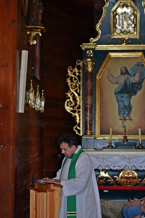 Wieczorem o godz. 18:00 ks. kan. Bogumił Kempa sprawował w sanktuarium Mszę Świętą oraz wygłosił kolejną naukę rekolekcyjną. Przed Eucharystią oraz w czasie jej trwania była okazja do skorzystania z sakramentu pokuty i pojednania. Kolejne ważne słowa usłyszeliśmy w szóstym dniu rekolekcji, słowa o wielkiej miłości Boga do człowieka, o doświadczaniu obecności Boga w trudnych życiowych sytuacjach. W oczach wielu wiernych zgromadzonych w sanktuarium pojawiły się łzy, gdy ks. kan. Bogumił dzielił się doświadczaniem obecności i miłości Boga przez jego rodzinę najbliższych, osoby wśród których posługiwał właśnie w sytuacjach życiowych burz. Rozpoczynając rozważanie nawiązał do burz, które przeszły przez nasz kraj w piątkowy wieczór. Nawiązując do czytań mszalnych, podkreślił, że Bóg nie był w tej wichurze, bo Bóg nie chce dla człowieka zła. Podkreślił, że Bóg chce zawsze dla człowieka dobra. Nawiązując do miejsca, w którym głoszone są rekolekcje powiedział: Tyle ta świątynia mieści próśb, podziękowań, tyle przez przyczynę św. Rocha tutaj się dokonało, zwłaszcza w ludzkich sercach”. Jak podkreślił, wypisujemy na kartkach nasze prośby, podziękowania, czasem nosimy je w swoich sercach, bo słowami nie potrafimy ich wyrazić, ale w Bogu szukamy nadziei. „Bóg jest nadzieją. Pan przychodzi – jak usłyszeliśmy w I czytaniu- w lekkim powiewie, delikatnie, subtelnie, cicho dotyka naszych serc przez różne trudne doświadczenia, przez różne trudne burze, które mogą dotykać naszego życia” – kontynuował kaznodzieja. Te burze dotykały także ks. kan. Bogumiła i jego najbliższych. Dziękujemy za to piękne świadectwo, które mamy nadzieję pomoże nam dostrzec Boga, Jego miłość, obecność w chwilach naszych życiowych burz. Podkreślił, że często właśnie w tych trudnych chwilach człowiek tak naprawdę dostrzega Boga, w nim upatruje swoją jedyną nadzieję. Powiedział: „ Dobrze, że Pan Bóg daje nam takie miejsca, że daje nam św. Rocha, że tu Mikstacie macie to sanktuarium, ze ono się tak pięknie rozwija, że tylu ludzi o to miejsce pyta. Chce tu przyjść, zajrzeć” .W dalszej części homilii kaznodzieja zachęcał zebranych, by w chwilach trudności nie bali się przychodzić do Jezusa po wodzie. Ksiądz Bogumił zwrócił uwagę na ważne słowo w przeznaczonej na ten dzień Ewangelii: Jezus „ natychmiast” wyciągnął rękę, gdy Piotr zaczął tonąć. Zachęcał, byśmy naśladowali Pana Jezusa w tej postawie. Podkreślił jak ważna jest obecność przy człowieku doświadczającym cierpienia, przeżywającym trudne chwile. „ Trzeba natychmiast wyciągnąć rękę, trzeba natychmiast przyjść z pomocą, trzeba przytulić, czasami zapłakać razem, a czasami stanąć tak jak ja z bratem, popatrzeć w niebo, w gwiazdy. Po prostu być”. Tej postawy towarzyszenia człowiekowi możemy się jak zaakcentował ks. kan. Bogumił uczyć także od św. Rocha. Homilię zakończył słowami: „ Wierzę, że św. Roch jest tu, tu w Mikstacie, w tej świątyni i czeka na każde uderzenie twego serca, na to żebyś się dotknął Jego świętości. Przez Jego świętość, przez Jego cierpienie, przez Jego rany dotykasz samego Chrystusa, bo On na to pozwala. Jakie to cudowne zrozumieć, że Pan jest obok nas i tym się dzielić ze wszystkimi mówiąc, „ BÓG JEST DOBRY”, nawet jeśli życie ci się wali”. Po Mszy św. ks. kan. Krzysztof Ordziniak odprawił nowennę. Wiele próśb i podziękowań zostało podczas niej odczytanych, ale zapewne nie brakowało i tych, które nosimy w naszych sercach, które zna Bóg. Bóg, który jest dobry i pragnie dla człowieka dobra. Sobotnie przygotowania duchowe do uroczystości odpustowych ku czci św. Rocha zakończyło się uczczeniem Jego relikwii.