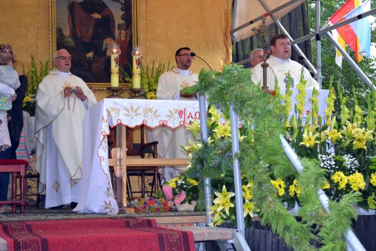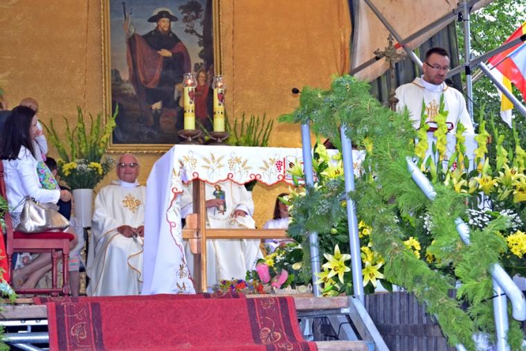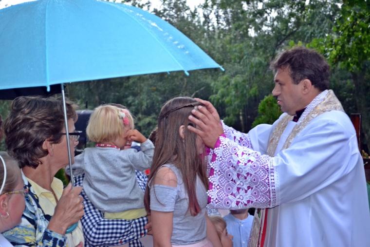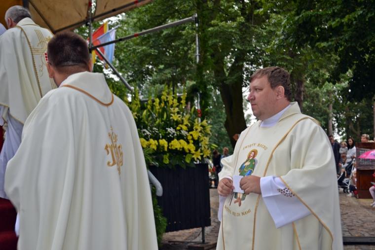 Czas wielkiego świętowania rozpoczął się procesją z Najświętszym Sakramentem i relikwiami Świętego Rocha z kościoła farnego do sanktuarium, zakończył jej powrotem. Zanim procesja z Najświętszym Sakramentem wyruszyła z sanktuarium do fary wyjątkowo gwarno zrobiło się wokół niego. W dniu uroczystości odpustowych przybyły wraz ze swoimi rodzicami do św. Rocha dzieci. Tu o godz. 18:00 ks. kan. Bogumił Kempa sprawował w ich intencji Mszę święta oraz skierował do wiernych rozważanie. Krótko po rozpoczęciu Eucharystii zaczął padać deszcz. Ksiądz Bogumił zaprosił dzieci, by zgromadziły się przy ołtarzu, bo zostało nad nim przygotowane zadaszenie. Na początku homilii kaznodzieja powiedział, że pierwszy raz głosi ją w takim towarzystwie. Wyraził radość z obecności tak wielu dzieci w sanktuarium u św. Rocha. Podkreślił, że dzieci przybyły tu po błogosławieństwo, które czyni człowieka szczęśliwym. Wyjaśniając istotę błogosławieństwa powiedział: „ Jeżeli błogosławię, to znaczy życzę komuś dobrze, życzę mu szczęścia. Przyszły tutaj te dzieci, aby mogły dostać Boże szczęście, dlatego tak ważna drodzy rodzice jest wasza obecność tutaj”. O tym jak ważne jest to, by rodzice błogosławili swoje dzieci mówił kaznodzieja w dalszej części rozważania. Zachęcał, by rodzice jak najczęściej błogosławili swoje dzieci. Dając świadectwo powiedział, że jego rodzice nadal błogosławią go, gdy wraca do domu, bądź z niego wyjeżdża. Stwierdził, że ważne jest to błogosławieństwo, bo uświadamia nam, że tylko Chrystus może dać nam prawdziwe szczęście. Nawiązując do postaci św. Rocha powiedział: „ Ten nasz wspaniały Patron, którego czcimy już od tylu dni jest tego dowodem. Ten człowiek doświadczył i cierpienia i złośliwości, doświadczył uwięzienia, doświadczył choroby. Doświadczył tego, że tak wielu ludzi się od niego odwróciło. A jednak jest błogosławiony, jest szczęśliwy”. W dalszej części rozważania ks. Bogumił zachęcał i prosił rodziców,aby uczestniczyli z dziećmi we Mszy św. i pokazywali im jak jest ona ważna. Podkreślił ponadto znaczenie przykładu rodziców i zachęcał, by klękali do modlitwy i uczyli jej swoje dzieci. Kończąc homilię kaznodzieja powiedział: „ Niech Boże błogosławieństwo z tego miejsca, z tego sanktuarium spływa na was, na wasze rodziny, na wszystkie dzieci, także na te nienarodzone, bo widzę że i takie też tu są. Niech Pan Bóg wam wszystkim błogosławi”. Została odmówiona specjalna modlitwa, a następnie kapłani udzielali dzieciom indywidualnego błogosławieństwa. Na pamiątkę spotkania u św. Rocha dzieci otrzymały obrazki. Były też i dla nich słodycze.