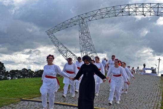 Z Gniezna pojechaliśmy na Pola Lednickie, gdzie odbywało się spotkanie seniorów. W tym roku jego hasłem przewodnim były słowa „ Idź i kochaj”. Spotkanie na Lednicy rozpoczęło się gimnastyką. Punktualnie o godz. 12:00 włączyliśmy się w modlitwę Anioł Pański.