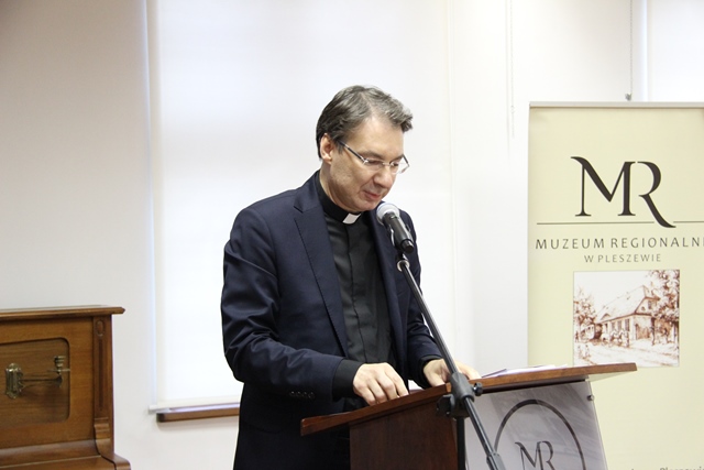 Wydania okazałej publikacji gratulowali: Arkadiusz Ptak, zastępca burmistrza Miasta i Gminy Pleszew oraz prowadzący spotkanie Adam Staszak, dyrektor Muzeum Regionalnego w Pleszewie.