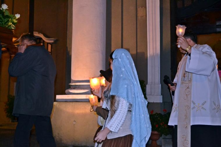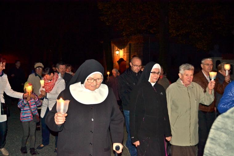 Po zakończeniu modlitwy różańcowej za krzyżem i figurą Matki Boże Fatimskiej ze śpiewem na ustach, z płonącymi lampionami wyruszyliśmy w procesji wokół kościoła. Po powrocie procesji do kościoła w łączności duchowej z Jasną Górą zaśpiewaliśmy Apel Jasnogórski. Ku niebu popłynęły słowa: Maryjo: jestem, pamiętam, czuwam.