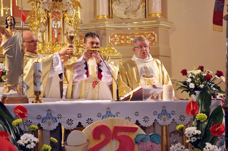 Małe i wielkie jubileusze są okazją do dziękczynienia, ale i radosnych spotkań. Taki piękny Jubileusz 25-lecia Kapłaństwa obchodził, posługujący od ponad czternastu lat  w  mikstackiej parafii ks. proboszcz Krzysztof Ordziniak, który jednocześnie jest kustoszem Diecezjalnego Sanktuarium Świętego Rocha. W niedzielne przedpołudnie o godz. 11:00 w kościele farnym sprawowana była Jubileuszowa Msza Święta, na którą ks. kanonik zaprosił wszystkich parafian. Przed uroczystościami wręczył każdej rodzinie zaproszenie na wspólną modlitwę, a po niej biesiadowanie w parku. Podczas Mszy Świętej Jubilat dziękował za wszystkie otrzymane łaski, za dar powołania, za osoby, które były, są i będą przy nim na drodze kapłańskiej posługi.