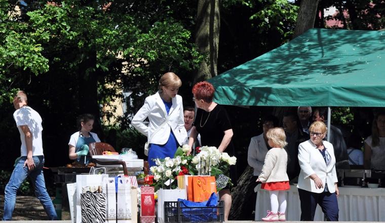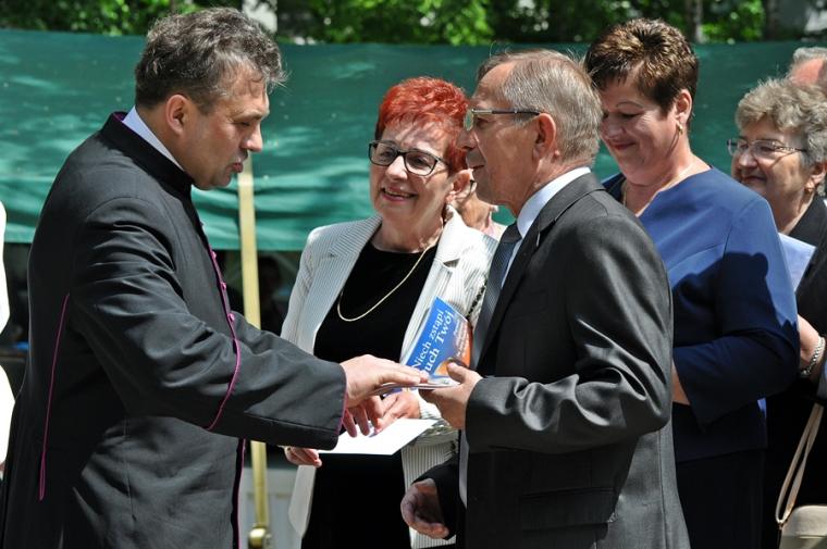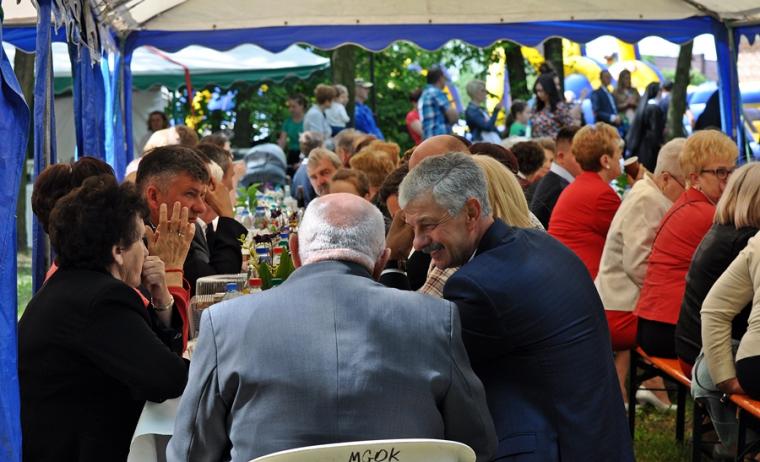 Po mszy świętej jej uczestnicy wraz z Jubilatem przy dźwiękach orkiestry z Chełmc przeszli do parku. Tu wielu gości złożyło ks. kan. Krzysztofowi życzenia. Wiele życzliwych słów padło pod adresem ks. Jubilata. Składający życzenia zostali obdarowani przez ks. kan. Krzysztofa albumem z homiliami i przemówieniami Ojca świętego  Jana Pawła II z pierwszej pielgrzymki do Polski, pamiątkowym obrazkiem i płytą z filmem „Czekając na motyle”. Potem przyszedł  czas na konsumpcję przepysznych potraw, rozmowy i wspomnienia. Podczas biesiadowania przygrywała wspomniana już orkiestra z Chełmc i zespół muzyczny. Ks. Jubilat nie zapomniał o swoich najmłodszych gościach. Dzieci chętnie korzystały ze zjeżdżalni i dmuchanego placu zabaw. Wielu gości spędziło czas na rozmowach spacerując parkowymi alejkami.