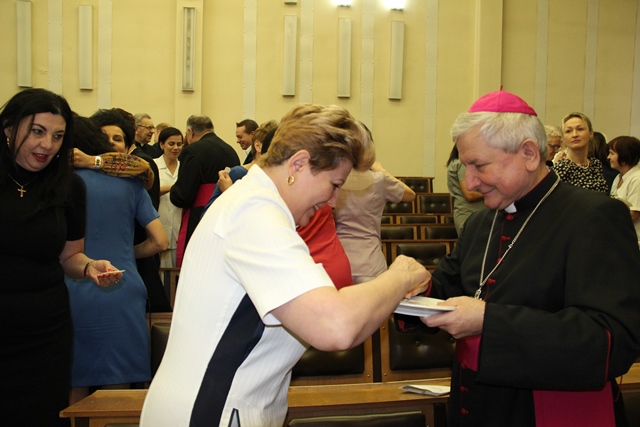 W słowie skierowanym do pracowników szpitala bp Edward Janiak dziękował za troskę o pacjentów. – Nieraz nie zdajemy sobie sprawy, jak ważna jest rola pielęgniarki, która uśmiechnie się do pacjenta. Ogromnie ważne jest to, aby dawać drugiemu człowiekowi nadzieję. Proszę przyjąć serdeczne podziękowanie za tę służbę, która jest często niedostrzegana. Rzadko kto dziękuje za trud nieprzespanej nocy, dyżury, poświęcenie – mówił biskup kaliski.