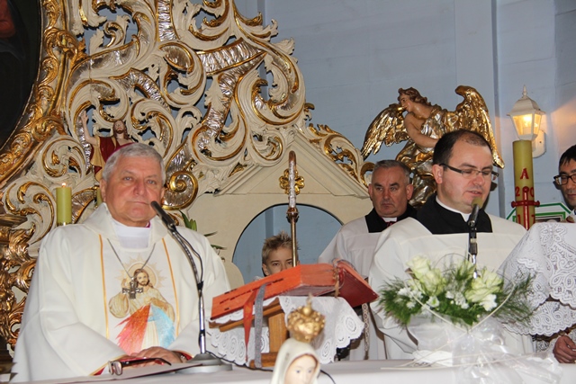 Wraz z biskupem kaliskim Edwardem Janiakiem Mszę św. koncelebrowali: ks. prał. Józef Nowacki, emerytowany proboszcz parafii pw. Zwiastowania NMP w Dębe i ks. dr Sławomir Kęszka, obecny proboszcz.