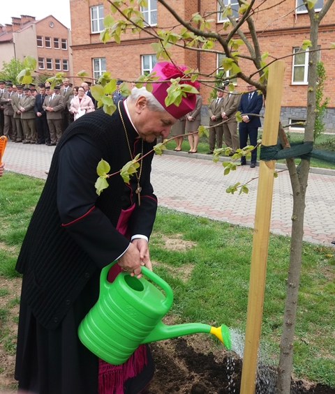 Druga część spotkania odbyła się w Wyższym Seminarium Duchownym w Kaliszu, gdzie przed budynkiem posadzono lipy. Jedną z nich zasadził biskup kaliski Edward Janiak.