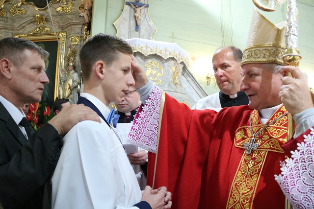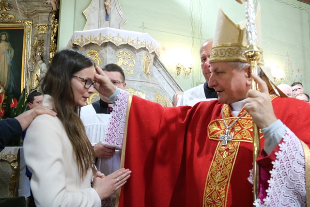 Biskup kaliski poświęcił odnowioną drewnianą świątynię i udzielił młodzieży sakramentu bierzmowania.
