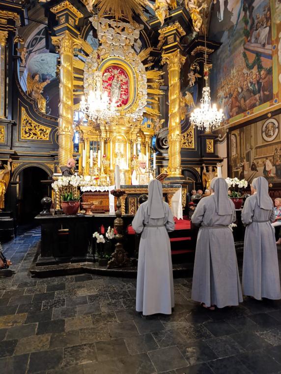 Nieprzypadkowo zatem za miejsce głównego spotkania wybrałyśmy Bazylikę w Krakowie Łagiewnikach, która jest Kościołem Jubileuszowym i miejscem bliskim świętemu Papieżowi za jego życia. Stąd z kolei przebyłyśmy szlak wiodący przez dwa kolejne sanktuaria związane z Karolem Wojtyłą – Kalwarię Zebrzydowską i Wadowice –, żeby na koniec powrócić do świątyni Bożego Miłosierdzia. We wspólnym pielgrzymowaniu przez swoiste trzy stacje wzięło udział blisko 130 sióstr z całego świata. Program dni obfitował w wiele ważnych dla nas wydarzeń.