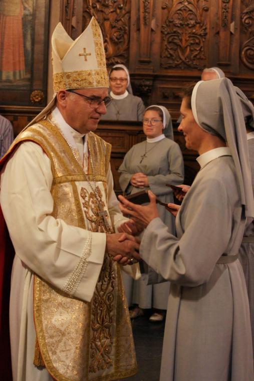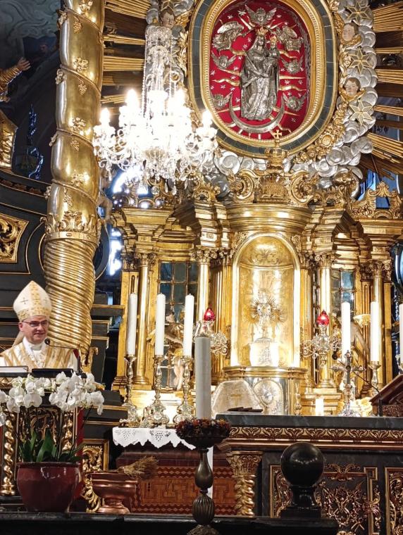 I tak, u Matki Bożej Kalwaryjskiej głównym punktem naszego pobytu była Msza św. wraz z ks. bp. Robertem Chrząszczem, Delegatem KEP ds. Duszpasterstwa Emigracji Polskiej w intencji sióstr, które w tym roku udają się na misje wśród Polonii. Podczas Eucharystii sprawowanej przez bp. Roberta miał miejsce obrzęd posłania do posługi za granicą s. Anny Kraśner (do Niemiec), s. Teresy Pluty (do Francji) i s. Anastazji Miszkura (do Niemiec). Było to pierwsze spotkanie wspólnoty z niedawno wybranym delegatem polonijnym. Cieszyłyśmy się, że u progu swojego nowego zadania ks. biskup mógł poznać wiele sióstr naszego Zgromadzenia, z którymi z pewnością będzie się spotykał w przyszłości na emigracyjnych drogach.