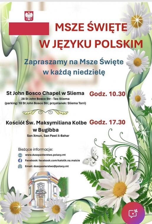 Obecnie Msze Święte w języku polskim są sprawowane w każdą niedzielę w Sliemie oraz w Bugibbie. Duszpasterstwo polonijne prowadzi ks. Adam Nyk SDB, polski salezjanin.