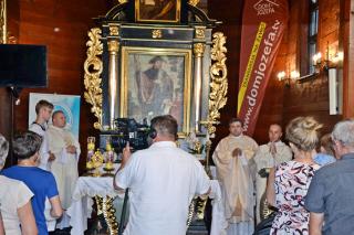 Przed zakończeniem Eucharystii Ksiądz Mateusz, Dyrektor Diecezjalnego Radia Rodzina i Telewizji Internetowej Dom Józefa zachęcał uczestników modlitewnego spotkania zarówno tych zgromadzonych w sanktuarium i wokół niego, jak i łączących się z nami duchowo dzięki transmisji do korzystania z dostępnych mediów. Wielu z nas jest wiernymi słuchaczami audycji Radia Rodzina i widzami programów TV Dom Józefa, ale mamy nadzieją, że radiowo- telewizyjna transmisja przyczyni się do powiększenia grona słuchaczy i widzów. Naprawdę warto, bo propozycji audycji radiowych i telewizyjnych jest wiele i są bardzo różnorodne. Każdy może w nich znaleźć coś dla siebie. Ponadto ks. Mateusz przybliżył słuchaczom i widzom postać św. Rocha i specyfikę mikstackiego sanktuarium. Zwrócił uwagę, że dzięki transmisjom różnych uroczystości mamy okazję poznawać piękne kościoły i sanktuaria znajdujące się na terenie naszej diecezji.