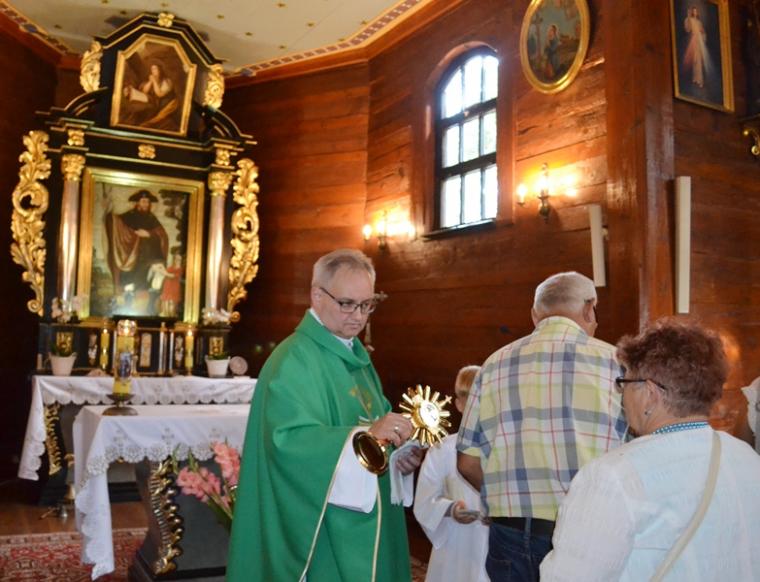 Podczas tej Eucharystii ks. kan. Arkadiusz modlił się w intencji osób chorych, starszych, niepełnosprawnych, którzy byli obecni w sanktuarium, ale także za przebywających w szpitalach, hospicjach, domach opieki. Przepełniona świadectwami z posługi w szpitalu była homilia wygłoszona przez celebransa. Rozpoczynając powiedział, że od roku pracuje jako kapelan. Podkreślił, że kapelan, to ten, który służy. Przyznał, że szpital kojarzy nam się z trudnym doświadczeniem, a „powinien stać się dla nas miejscem, gdzie Bóg jest najbliższy człowieka w tajemnicy ludzkiego cierpienia”. Następnie nawiązał do osoby błogosławionej, która obecna była wśród nas w relikwiach. Jak się okazało chociaż czasy w których żyli św. Roch i bł. Hanna dzieli siedem wieków, to w ich życiorysach znaleźć można wiele wspólnych elementów. Kaznodzieja podkreślił, że obydwoje od najmłodszych lat, byli uczeni wrażliwości na ludzką biedę i cierpienia. Zarówno św. Roch jak i bł. Hanna w młodym wieku tracą najbliższe osoby, oboje posługują chorym, cierpiącym. Kontynuując ks. kapelan przyznał, że bł. Hanna Chrzanowska jest jego szczególną patronką, która od młodzieńczych lat prowadziła go do kapłaństwa. Podkreślił, że poznał, kim ona tak naprawdę była dopiero podczas jej beatyfikacji. Zaakcentował, że ona podobnie jak święty Roch nie miłowała słowem, ale czynem. W dalszej części homilii ks. Arkadiusz przywołał przykład jej heroicznej posługi najbiedniejszym, najbardziej potrzebującym. Zwrócił uwagę, że była ona ta, która wiedziała, że jeśli będzie się z szacunkiem, miłością i delikatnością pielęgnowało ciało człowieka, to z czasem dusza otworzy się na Boga. Dodał, że to ona była tą, która zaprowadziła Jana Pawła II i wielu kapłanów do chorych. Jan Paweł II był dla niej zawsze wsparciem, zawsze mogła na niego liczyć. Ich wspólnym dziełem były pierwsze rekolekcje dla chorych, niepełnosprawnych. Z kolei to chorzy zaprowadzili przyszłą błogosławioną do Chrystusa.