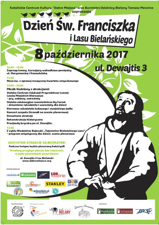 Katolickie Centrum Kultury Dobre Miejsce, Parafia p.w. bł. E. Detkensa oraz Rada i Zarząd Dzielnicy Bielany serdecznie zapraszają na VI edycję rodzinnego pikniku ekologicznego "Dzień św. Franciszka i Lasu Bielańskiego".