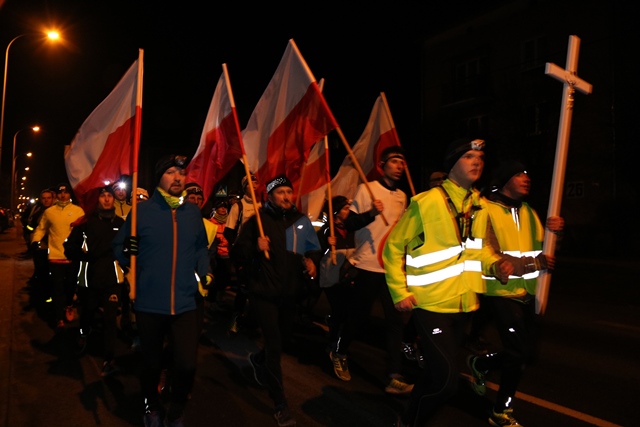 W sobotni wieczór biegacze zgromadzili się na Mszy św. w kościele św. Pawła Apostoła, skąd po odpaleniu pochodni od paschału wyruszyli w drogę z krzyżem i intencjami. Bieg z zachowaniem milczenia przeplatany był 14 stacjami, podczas których odczytano rozważania pasyjne. Uczestnicy zatrzymali się także przy Klasztorze Ojców Pasjonistów w Sadowiu.