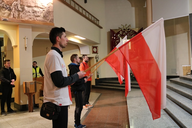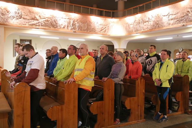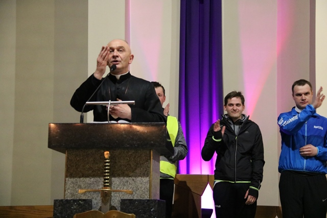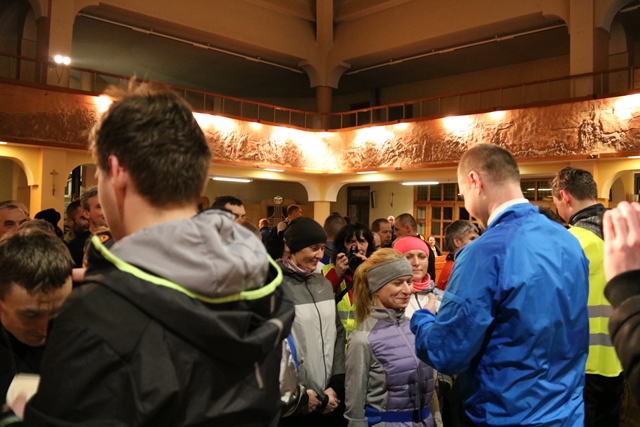 Półmaraton zakończył się w kościele św. Pawła Apostoła w Ostrowie Wielkopolskim wspólną modlitwą i rozdaniem pamiątkowych medali. Wcześniej, o godz. 21.00, w oczekiwaniu na powrót biegaczy w ostrowskiej świątyni odprawione zostało nabożeństwo drogi krzyżowej. Uczestników Biegowej Drogi Krzyżowej witał ks. kan. Jacek Kita. – Bądźcie dumni z siebie i z treści oraz wartości, które dziś ukazaliście poprzez świadectwo wiary w tej drodze krzyżowej. Bądźcie dumni z siebie, że jesteście Polakami i katolikami. Bądźcie dumni z tych treści i bądźcie tego świadkami w swoich miejscowościach. Dzisiaj świat nie potrzebuje nauczycieli, ale potrzebuje świadków. Bóg, honor i ojczyzna, a także krzyż na Giewoncie to są zawsze te znaki, które gdzieś głęboko leżą w naszych sercach - powiedział proboszcz parafii św. Pawła Apostoła w Ostrowie Wielkopolskim. Dziękował biegaczom za świadectwo wiary. - Dziękuję wam za to piękne świadectwo waszej wiary i przywiązania do tego, co stanowi filar naszej tożsamości narodowej – powiedział ks. Kita.