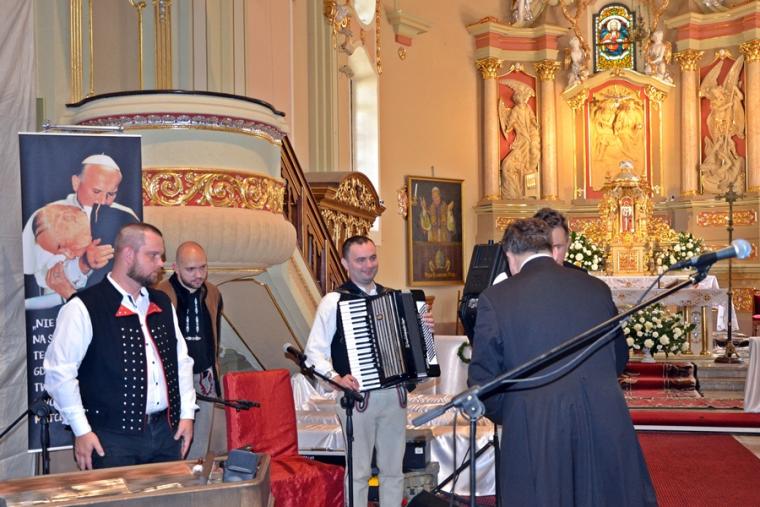 Po Mszy świętej odbył się koncert Zebrani w kościele usłyszeli wyjaśnienie znaczenia nazwy Kapeli. Było kilka słów o miłości św. Jana Pawła do gór. Potem dźwięki góralskiej muzyki wypełniły naszą świątynie. W doświadczeniu klimatów górskich i miejsc, które szczególnie ukochał Papież – Polak pomocna była prezentacja multimedialna.