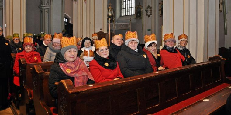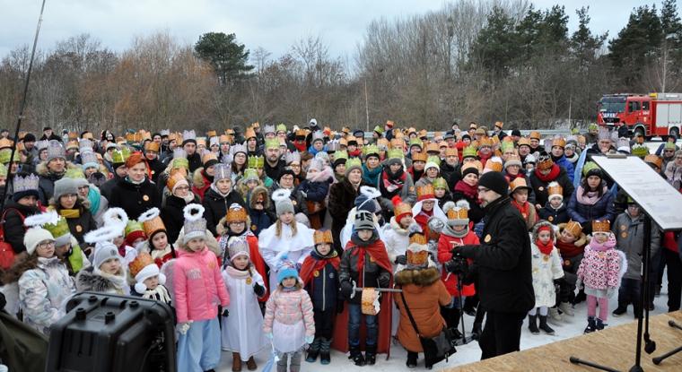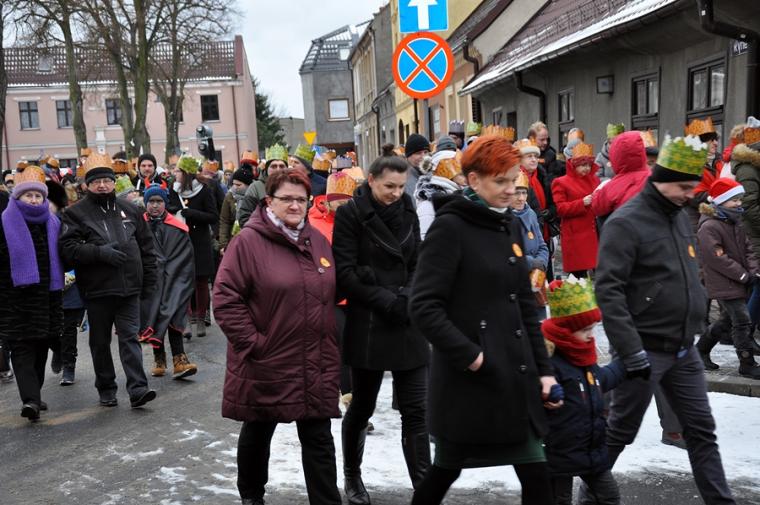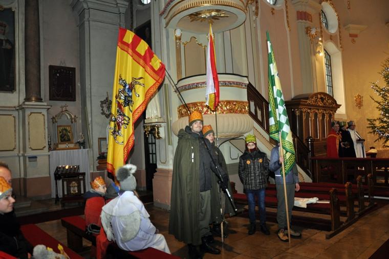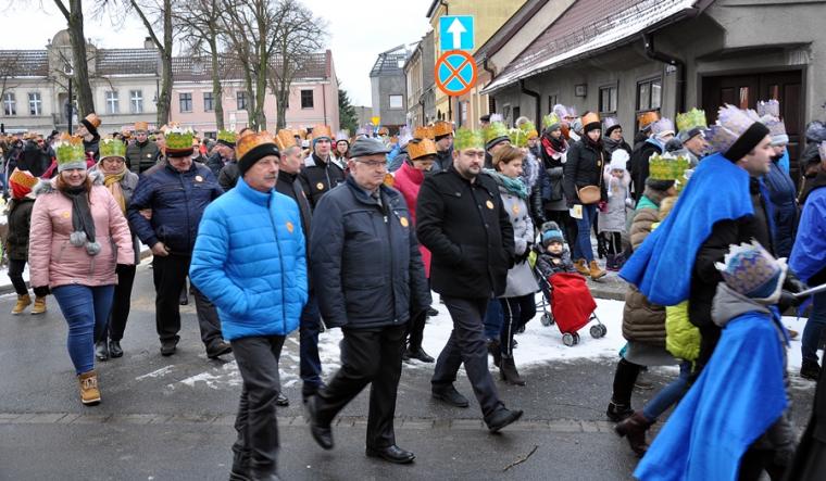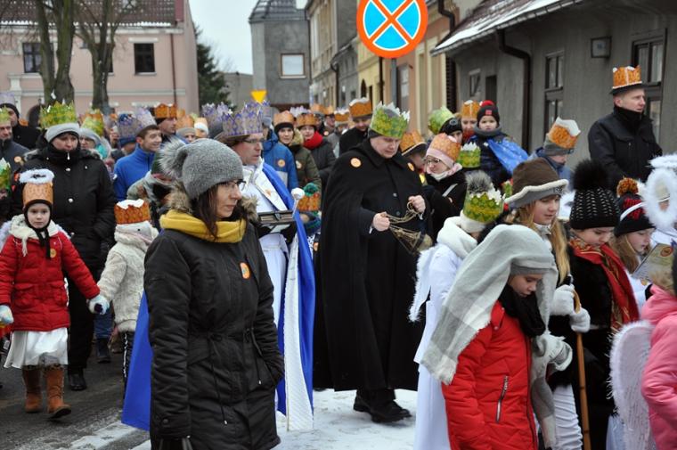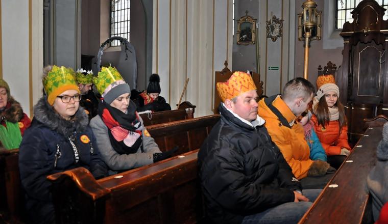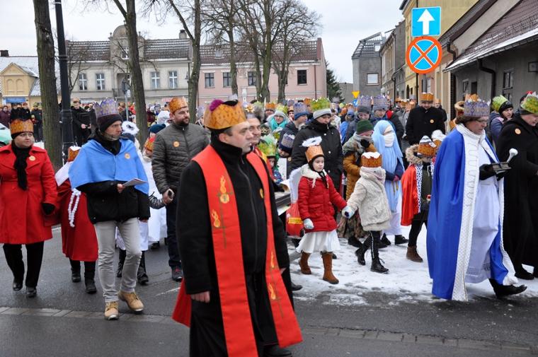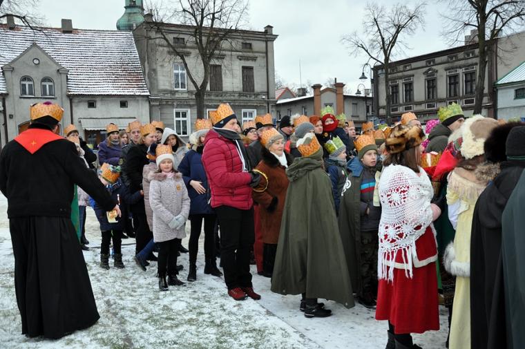 Około godz. 14:00 w kościele pw. Świętej Trójcy zaczęli zbierać się uczestnicy Królewskiego Orszaku. Tu odbyła się jego pierwsza część, którą poprowadził ks. Szymon Grzeszkiewicz, proboszcz parafii pw. Zwiastowania Pańskiego. Rozpoczynając ks. Szymon podkreślił, że spotykamy się po raz pierwszy, wspólnie, dekanalnie, by obchodzić obchodach Święta Objawienia Pańskiego, by wziąć udział w Orszaku Królewskim. Zaakcentował, że uczestnicy Orszaku podobnie jak Mędrcy ze Wschodu udają się, by oddać pokłon Jezusowi, ale także dać świadectwo swojej wiary. Następnie ks. Szymon skierował słowa powitania do wszystkich tych, którzy przybyli wraz ze swoimi parafiami. W postacie królów wcielili się księża proboszczowie. Kapłan podkreślił, że Orszak Trzech Króli, nie ma długiej tradycji, ale coraz więcej miejscowości włącza się w tę radosną formę świętowania i wspólnego kolędowania.