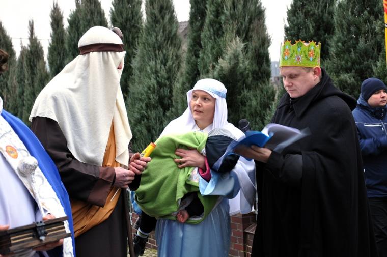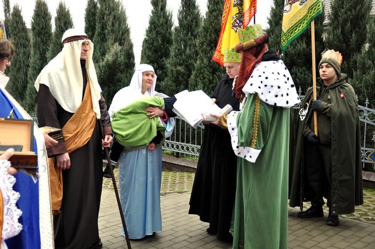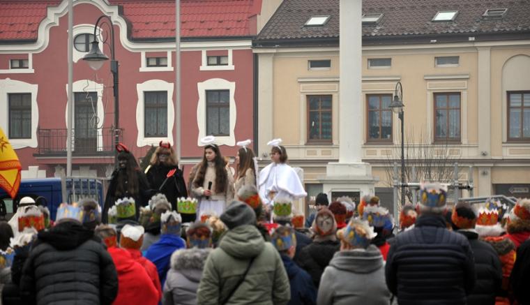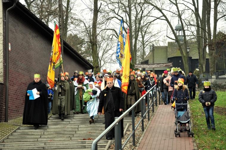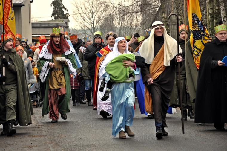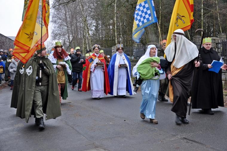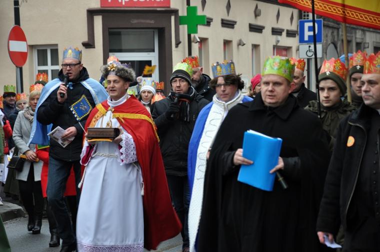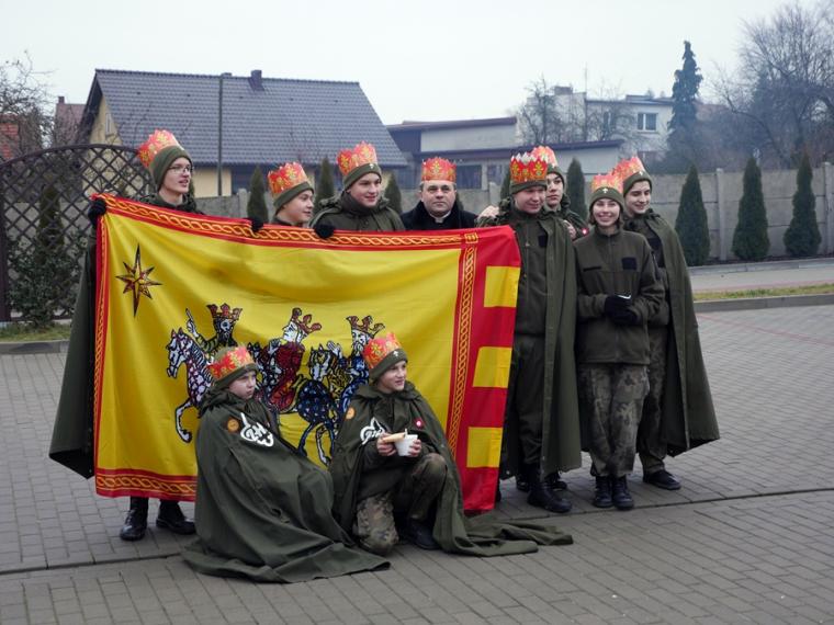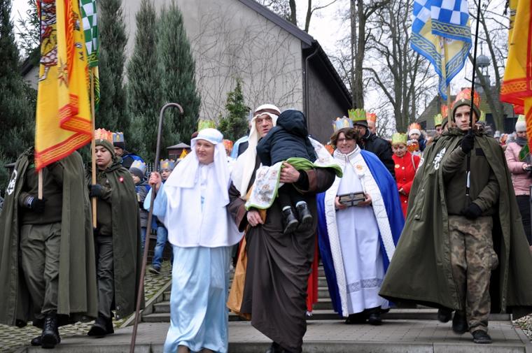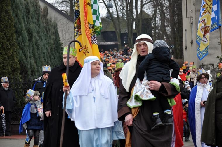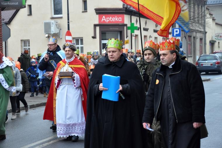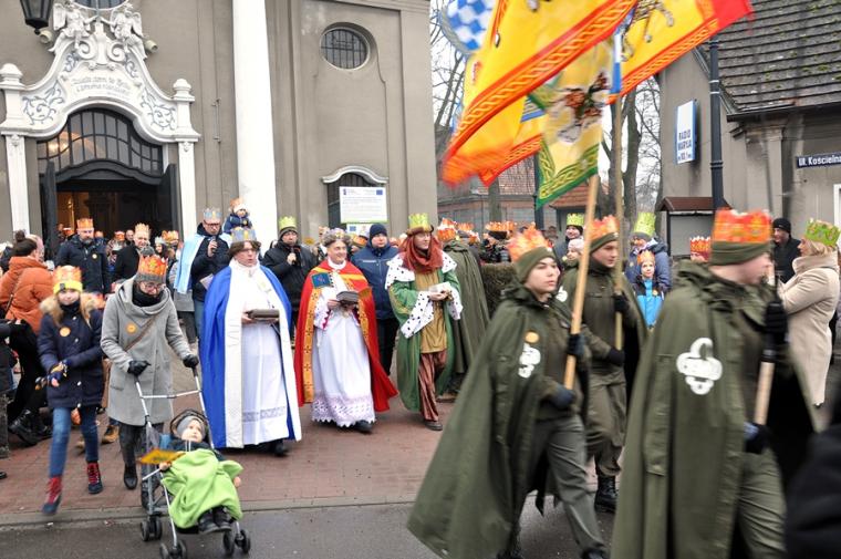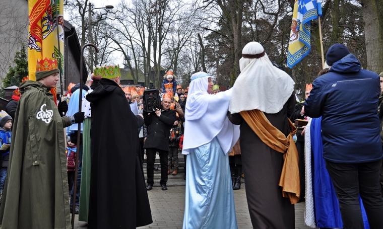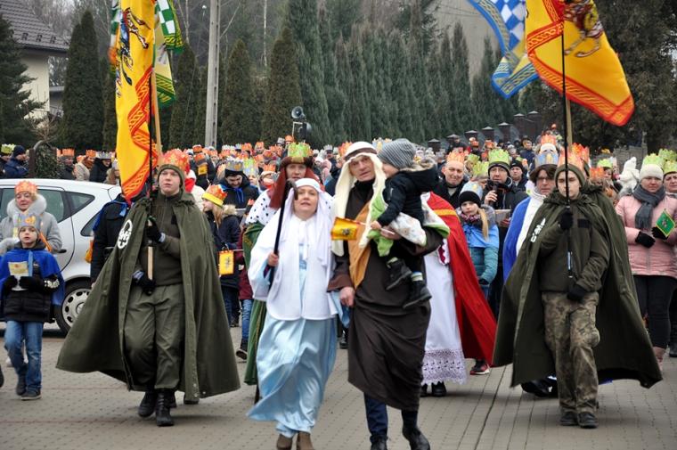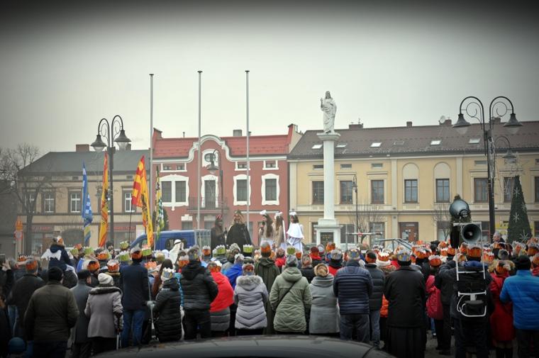 Radośnie i wyjątkowo kolorowo było na ulicach Mikstatu, zwłaszcza w okolicach kościoła pw. Świętej Trójcy około godziny 14:00, 6. stycznia, w uroczystość Objawienia Pańskiego popularnie nazywanego Świętem Trzech Króli. To właśnie świadectwo wiary Trzech Króli zgromadziło tak wiele osób w zielonych, niebieskich bądź czerwonych koronach. Postanowili tak jak kiedyś Mędrcy ze Wschodu wyruszyć w drogę, by dotrzeć do stajenki i w małym Dzieciątku złożonym w ubogim żłobie dostrzec wyczekiwanego Syna Bożego. Orszak Trzech Króli odbył się w Mikstacie po raz drugi. Do udziału w nim zaproszeni zostali wierni z sąsiednich parafii, które należą do dekanatu mikstackiego. Koordynatorem działań związanych organizacją Orszaku był ks. kan. Krzysztof Ordziniak, dziekan mikstackiego dekanatu. Dla uczestników zostały przygotowane korony w niebieskim, czerwonym, zielonym kolorze, śpiewnik, a dzieci także kolorowe chorągiewki. Na ten dekanalny Orszak przybyli ze swoimi duszpasterzami wierni z parafii w Chynowej, Kaliszkowic Kaliskich, Kotłowa, Przedborowa i Mikstatu. Każdy z duszpasterzy miał w nim do spełnienia określoną rolę. W tym roku konferansjerem był ks. W rolę konferansjera wcielił się w tym roku ks. Aleksander Nawrocki, proboszcz parafii pw. Świętego Idziego w Przedborowie. Osoby z tej parafii odgrywały rolę Maryi i Józefa, a w pewnym momencie pojawiło się nawet „Boże Dzieciątko”. Duszpasterze pozostałych parafii wcielili się w role królów. W postać króla europejskiego Kacpra wcielił się ks. kan. Adam Kosmała, proboszcz parafii rzymskokatolickiej pw. Narodzenia NMP w Kotłowie. Jego orszak stanowili wierni z parafii pw. Świętej Trójcy w Mikstacie, którzy otrzymali korony w kolorze czerwony, a wielu zadbało o to, by w ich ubiorze znalazł się jakiś element tej barwy. Ks. kan. Przemysław Talaga proboszcz parafii pw. Świętego Wawrzyńca w Chynowej wcielił się w postać króla afrykańskiego Baltazara. Orszak tego króla składał się z wiernych z parafii w Chynowej i z Kotłowa. Wyróżniał się niebieskimi koronami i dodatkami do ubioru w tym kolorze. Orszak króla azjatyckiego składał się z uczestników z parafii w Przedborowie i parafii w Kaliszkowicach Kaliskich. Na jego czele stał król Melchior -ks. Szymon Grzeszkiewicz- proboszcz parafii w Kaliszkowicach Kaliskich. Temu orszakowi został przypisany kolor zielony. Tegoroczny Orszak Trzech Króli AD 2020 przebiegał pod hasłem „Cuda, cuda, ogłaszają…”. Są nim słowa z kolędy „Dzisiaj w Betlejem”, które nawiązują do ważnych wydarzeń z historii naszego kraju, ale także do „cudu” jakim jest odnalezienie i dostrzeżenie w Dzieciątku narodzonemu w ubogich warunkach i złożonemu w żłobie Syna Bożego. Mają nas one mobilizować do nieustannego poszukiwania Boga. Orszak wyruszył o godz. 14:00 z kościoła farnego pw. Świętej Trójcy w Mikstacie, a zakończy się na parkingu przy Urzędzie Miasta i Gminy. W kościele uczestnicy orszaku powitali brzemienną Maryję i Józefa. Uroczyste fanfary ogłosiły nadejście Trzech Króli. Następnie ze śpiewem kolędy „ Mędrcy świata monarchowie” za proporcem orszakowym i chorągwiami poszczególnych królestw uczestnicy udali się pod figurę Najświętszego Serca Jezusowego, która stoi w centralnym punkcie rynku. Tu obejrzeli przygotowaną przez Koło teatralne działające przy szkole podstawowej w Mikstacie scenkę „Dwór Heroda”. Była ona interesującą interpretacją kolędy „ Bóg się rodzi”. Pojawiły się tu Święta Rodzina, aniołowie, ale i diabły, które zastanawiały się cóż to dziwnego wydarzyło się w Betlejem. Z Rynku Królewski Orszak uliczki miasta udał się przed bramę prowadzącą do Diecezjalnego Sanktuarium Świętego Rocha. Tu zaprezentowana została kolejna scenka pokłon Trzech Króli Jezusowi, Maryi i Józefowi oraz złożenie Bożej Dziecinie darów mających symboliczną wymowę: złota, kadzidła i mirry. Następnie Królewski Orszak ze śpiewem i okrzykami wyrażającymi radość z narodzenia Zbawiciela udał się na parking przy Urzędzie Miasta i Gminy. Na parkingu uczestnicy Orszaku obejrzeli piękne i mające głębokie przesłanie jasełka przygotowane przez uczniów szkoły podstawowej z Chynowej. Składały się na nie następujące scenki: poszukiwanie przez Józefa w Betlejem miejsca dla Maryi i mającego się narodzić Dziecięcia, oznajmienie pastuszkom przez anioła radosnej nowiny o narodzinach oczekiwanej Bożej Dzieciny. Następnie pastuszkowie udali się, by oddać hołd Jezusowi. Przynieśli także dary, proste, zwyczajne, ale ofiarowane z potrzeby serca będące wyrazem ich miłości, ale i troski o Bożą Dziecinę. Życzeniami osiągnięcia świętości i zawierzenia Bogu swego życia zakończyły swój występ dzieci z Chynowej. Dzieci otrzymały gromkie oklaski. Słowa podziękowania skierował do zaangażowanych w organizację i przebieg Orszaku koordynujący działania ks. kan. Krzysztof Ordziniak. Potem nadszedł czas na dalsze wspólne kolędowania, ciepłą zupę, herbatę i słodkości. Nie mogło ich zabraknąć, wszak Orszak Trzech Króli to czas radosnego świętowania. Świętowanie to ma oczywiście przede wszystkim wymiar religijny, jest okazją do refleksji nad tym czy „gwiazda” za którą podążamy doprowadzi nas tak jak Mędrców ze Wschodu skutecznie do Jezusa. Potrzebujemy takiego czasu refleksji, bycia razem. Potrzebują takiego świadectwa wiary ci, którzy być może przypatrując się podążającemu Orszakowi usłyszeli radosną nowinę o witanym w żłobie Dzieciąteczku, w którym my dostrzegliśmy już Boga. Niewątpliwie jest to także wielkie święto rodzin, bo obserwując Królewski Orszak można było zobaczyć całe rodziny. Ale odbywający się w Mikstacie Orszak spełnia jeszcze jedną ważną rolę. Stwarza możliwość poznawania się i integracji parafian mikstackie