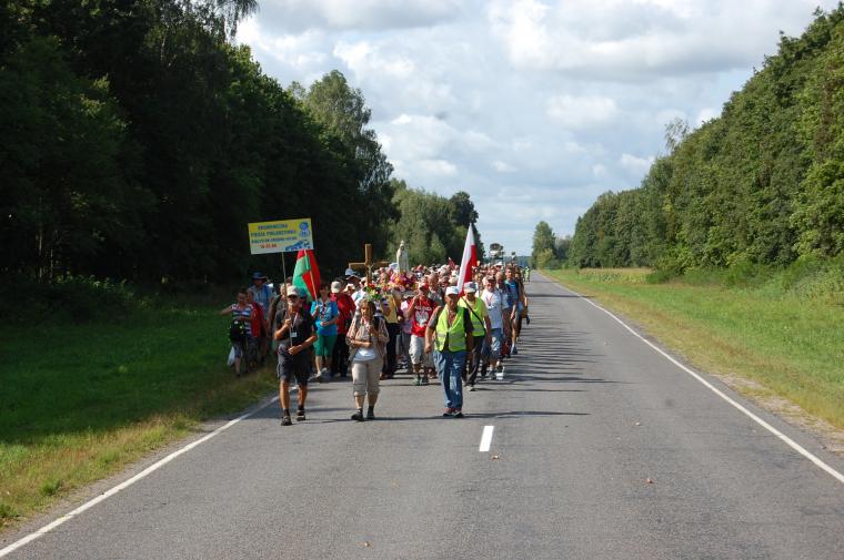 „Dotarliśmy do Jezior – wsi w obwodzie grodzieńskim, która liczy niewielu mieszkańców. W większości są to ludzie starsi. Dziewięć osób (razem ze mną) zostało przygarniętych przez małżeństwo w sędziwym wieku. Pani Jagna z mężem Michałem to ponad 80-letni mieszkańcy Jezior, którzy utrzymują się z pracy własnych rąk. To co od razu rzuciło się w oczy po przyjściu do gospodarzy, to po prostu bardzo skromne warunki, w jakich żyją starsi ludzie. Widząc, jak mieszkają, w ogóle nie oczekiwaliśmy zbyt wiele. Gospodarze robili co mogli, żeby nas jak najlepiej ugościć. Wyrazem tego były prezenty w postaci czekolady. Ku zaskoczeniu wszystkich zaproszono nas na kolację. Stół był zastawiony jak na wigilię. Widząc to wszystko, trudno nam było zjeść przygotowany posiłek, bo wiedzieliśmy, że większość produktów była zbierana przez cały rok i czekała do sierpnia, żeby tylko pielgrzymi mogli z nich skorzystać. Ta otwartość domu to jedno, ale to, co szczególnie zapamiętałem, to radość ze spotkania z nami i płomień miłości w oczach gospodarzy. Pod ich dachem, mimo że w skromnych warunkach, czuliśmy się po prostu jak u najukochańszych dziadków”.