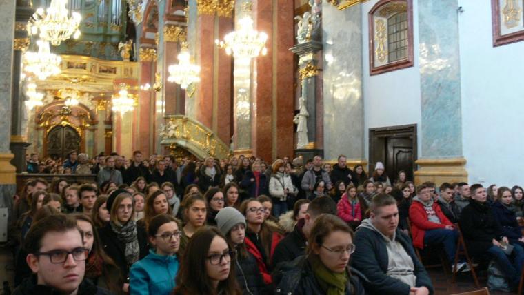 Pielgrzymka maturzystów diecezji legnickiej rozpoczęła się spotkaniem w Bazylice Jasnogórskiej wspólnym śpiewem z zespołem “Semen” z Wyższego Seminarium Duchownego Diecezji Legnickiej. Później uczniowie mieli okazję wysłuchać konferencji na temat: Po co Kościół w życiu?, którą wygłosił ks. dr Wojciech Węgrzyniak z archidiecezji krakowskiej, pracownik naukowy Uniwersytetu Jana Pawła II w Krakowie.