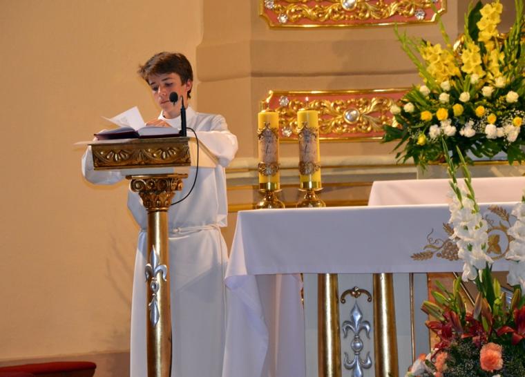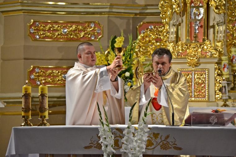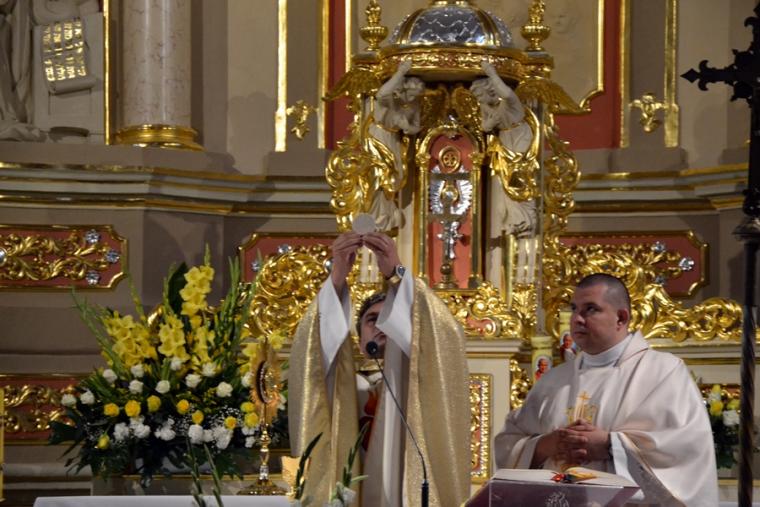 Rozpoczynając homilię ks. kan. Krzysztof podkreślił, że uroczystość Najświętszego Serca Pana Jezusa została ustanowiona na życzenie Pana Jezusa skierowane do św. Małgorzaty Marii Alacoque. Kaznodzieja przypomniał słowa św. Jana Pawła II skierowane do wiernych we Włocławku w 1991 roku: „ Jezu cichy i pokornego serca, uczyń serca nasze według serca Twego. Tak może mówić człowiek do Boga, który stał się Człowiekiem, który jako Człowiek nosi całą pełnie bóstwa i całą niezmierzoną głębie tajemnicy powołania człowieka w Bogu, w tym właśnie ludzkim sercu. Nosi tez w tym ludzkim sercu, na końcu włócznią przebitym włócznią, całą tajemnice ceny, wartości, jaką ma człowiek, całą tajemnicę odkupienia”. Kapłan zachęcał wiernych, by jak najczęściej prosili Jezusa, by uczynił ich serca na wzór Jego boskiego serca i by nie zrywali nigdy przyjaźni z Bogiem. Serca yo najważniejszy nazad ludzkiego ciała-kontynuował celebrans. Bicie serca świadczy o tym, że żyjemy. Podkreślił, że można komuś podarować serce, obdarzyć kogoś miłością. Zaakcentował, że wzorem miłości jest dla człowieka Jezus, gdyż Jego serce zostało przebite na krzyżu za nasze grzechy. Uroczystość Najświętszego Serca Jezusowego jest okazją do dziękczynienia za wielka miłość Boga do człowieka. W dalszej części homilii kaznodzieja wskazał wkład św. Małgorzaty Marii Alacoque w rozwoju kultu Serca Jezusowego. Przypomniał obietnice Jezusa Chrystusa dane za pośrednictwem św. Małgorzaty Marii Alacoque tym, którzy czcić będą Serce Najświętsze: 1.Dam im wszystkie łaski potrzebne w ich stanie. 2.Zgoda i pokój będą panowały w ich rodzinach. 3.Będę ich pocieszał we wszystkich ich utrapieniach. 4.Będę im bezpieczną ucieczką w życiu, a szczególnie przy śmierci. 5.Wyleję obfite błogosławieństwa na wszystkie ich przedsięwzięcia. 6.Grzesznicy znajdą w mym Sercu źródło nieskończonego miłosierdzia. 7.Dusze oziębłe staną się gorliwymi. 8.Dusze gorliwe dojdą szybko do doskonałości. 9.Błogosławić będę domy, w których wizerunek Serca mego będzie czczony. 10.Kapłanom dam dar kruszenia serc najbardziej zatwardziałych. 11.Osoby, które będą to nabożeństwo rozszerzały, będą miały imię swoje zapisane w mym Sercu i na zawsze w nim pozostaną. 12.Przyrzekam w nadmiarze miłosierdzia Serca mojego, że wszechmocna miłość moja, udzieli tym wszystkim, którzy przyjmą komunię św. w pierwsze piątki przez dziewięć miesięcy z rzędu, łaskę pokuty, iż nie umrą w niełasce mojej ani bez sakramentów świętych, a Serce moje będzie im pewną ucieczką w ostatniej godzinie ich życia. Jest ich tak wiele, korzystajmy więc z bezmiaru miłości Serca Jezusowego. Czcijmy Serce Jezusowe zachęcał celebrans. Kontynuując rozważanie ks. kan. Krzysztof zaznaczył, że powinniśmy w troszczyć się o to, by nasze serca były ciche i pokorne. Jednocześnie podkreślił, że pycha stanowi poważne zagrożenie dla naszego życia duchowego, gdyż rodzi się w naszym sercu i umyśle, popycha nas do złych działań, pragnień. Celebrans apelował, byśmy często przychodzili do Jezusa, zwłaszcza gdy jest nam trudno, bo w Jego sercu znajdziemy ukojenie dla naszych dusz. Od Jezusa mamy się uczyć pokory i miłości do Boga Ojca i do człowieka- zachęcał parafian ks. proboszcz.