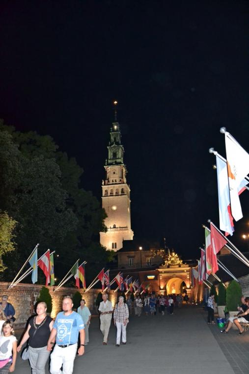 Potem wyruszyliśmy już do celu naszej pielgrzymki  na Jasną Górę. Tu zwiedziliśmy wystawę multimedialną „ Śladami Jezusa”. Był czas na indywidualną modlitwę w  Kaplicy Cudownego Obrazu Pani Jasnogórskiej. Zapewne wielu wyruszając na pielgrzymi szlak chciało spojrzeć w oczy Matki i Jej Boskiego Syna i w cichości serca powierzyć im najgłębiej skrywane radości i troski. Wiele osób nawiedziło kaplicę Adoracji Najświętszego Sakramentu.