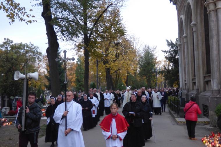 Po Nieszporach, odbyła się procesja po legnickiej nekropolii, z tradycyjną modlitwą przy pięciu stacjach. Modlitwą ogarnięci zostali: biskupi, kapłani, siostry zakonne, nauczyciele, wychowawcy, żołnierze, zesłańcy, rodzice, krewni, przyjaciele, oraz wszyscy wierni zmarli.