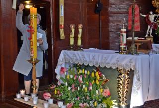 Przygotowani duchowo wkroczyliśmy w Niedzielę Miłosierdzia. Jest już tradycją, że w tym dniu sprawowana jest Eucharystia o wszelkie łaski potrzebne dla czcicieli Bożego Miłosierdzia z Mikstatu i Komorowa. O godz. 9:30 Msze św. w tej właśnie intencji sprawował ks. wikariusz Krzysztof Lipiński. Przed rozpoczęciem Eucharystii ks. kan. Krzysztof Ordziniak poświęcił obraz Jezusa Miłosiernego, który został ofiarowany do naszego kościoła przez p. Adama Joksa i jego małżonkę z dziećmi. Niedziela Miłosierdzia jest dniem szczególnych łask. Przepełnieni wiarą w potrzebę doświadczania Bożego Miłosierdzia przez nas samych, ale także bliskich, którzy poprzedzili nas w drodze do Pana, zebraliśmy się w tym szczególnym dniu, o godz. 15:00 w Diecezjalnym Sanktuarium Świętego Rocha na Koronce do Miłosierdzia Bożego, by polecać w niej bliskich zmarłych. Modlitwie przewodniczył ks. kan. Krzysztof Ordziniak. Po Koronce do Miłosierdzia Bożego odprawiane zostało nabożeństwo Drogi Światła. Mieliśmy okazję przeżyć 14 spotkań ze Zmartwychwstałym Panem. Na ołtarzu została ustawiona figura Chrystusa Zmartwychwstałego i czternaście lampek, które kolejno odpalane były od paschału. Towarzyszył temu śpiew „ My jesteśmy na ziemi…”. Ks. kan. Krzysztof odczytywał rozważanie poszczególnych spotkań z Jezusem zmartwychwstałym. Zapewne skłoniły one wielu do refleksji na jakim etapie drogi jestem? Którego spotkania ze Zmartwychwstałym Panem potrzebuję obecnie? Czy może zatrzymałem(am) się przy pustym grobie? A może tak jak Maria Magdalena szukam Pana? Warto dodać, że w zwieńczeniu ołtarza głównego znajduje się jej obraz. A może jak uczniowie z Emaus na swojej życiowej drodze nie dostrzegamy Jezusa? A może jak Tomasz potrzebujemy, by Pan umocnił naszą wiarę? Po nabożeństwie Drogi Światła w sanktuarium ks. kan. sprawował Mszę w intencji czcicieli Miłosierdzia Bożego z Mikstatu i Komorowa. Kiedyś ks. kan. odpowiedział na wezwanie Pana „ Pójdź za Mną” - tak. Dziś w Jego kapłańskich dłoniach chleb przemienił się w Ciało Chrystusa. Być może tak jak uczniowie poznaliśmy i doświadczyliśmy właśnie wtedy obecności Zmartwychwstałego. Niedziela Miłosierdzia rozpoczyna 74. Tydzień Miłosierdzia. Sami doświadczamy miłosierdzia od Boga, zwłaszcza w Sakramencie Pokuty i Pojednania. Czy to doświadczenie pomoże nam się otworzyć na potrzeby innych?