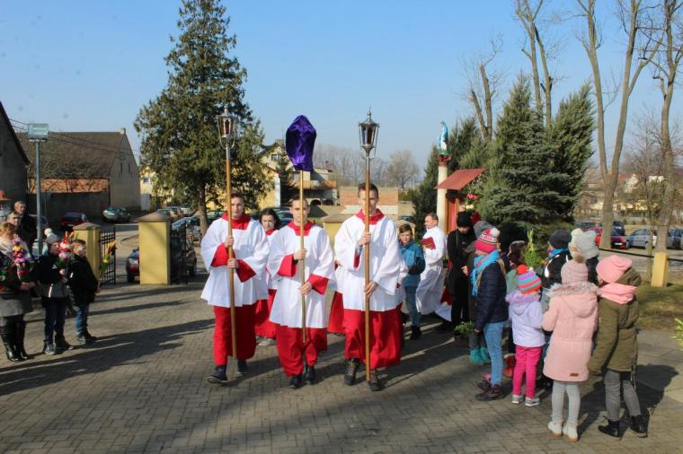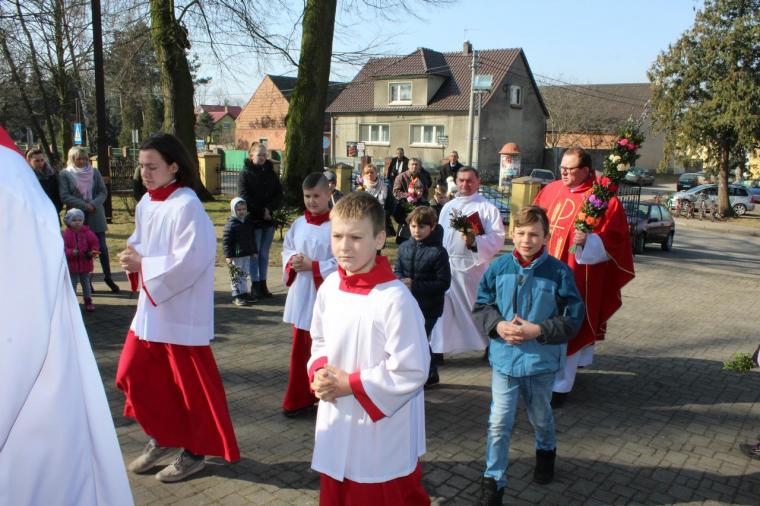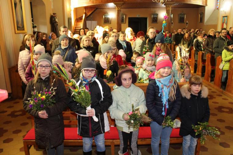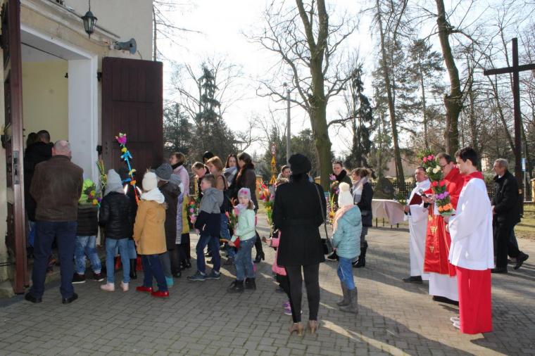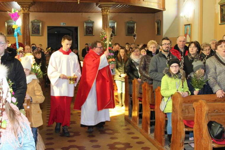 Każda msza święta, podczas której mogliśmy wysłuchać Ewangelii o Męce Pana naszego Jezusa Chrystusa, rozpoczynała się od obrzędu poświęcenia palm. O godzinie 10:30 odbyła się uroczysta procesja z palmami do kościoła.
