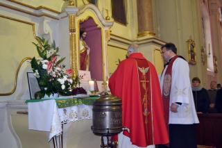 5. lutego w obchodzone jest liturgiczne wspomnienie Świętej Agaty dziewicy i męczennicy. W mikstackiej farze w ołtarzu bocznym znajduje się jej obraz. Wiele osób zapewne słyszało o odbywających się w Mikstacie uroczystościach odpustowych ku czci Świętego Rocha połączonych z obrzędem błogosławieństwa zwierząt. O uroczystościach odpustowych ku czci Świętej Agaty zapewne niewielu, chociaż jej kult jest tu żywy od stuleci. Stało się już tradycją w mikstackiej wspólnocie, że uroczysta suma odpustowa ku jej czci sprawowana jest w niedzielę. W tym roku przeżywaliśmy ją 4. lutego. Tak jak to się już stało tradycją, odpustową sumę, sprawowali Kapłani z Domu Księży Emerytów Jana Pawła II z Ostrowa Wielkopolskiego. Wraz z nimi przy ołtarzu stanął pochodzący z naszej parafii ks. kan. Zbigniew. Dlaczego mówimy o tradycji? Bo w tym roku zasłużeni dla kaliskiej diecezji Kapłani, którzy zakończyli już posługę w swoich parafiach po raz jedenasty przybyli do naszej wspólnoty, by dzielić z nami radość odpustowego czasu i sprawować Eucharystię. Na początku mszy św. ks. kan. Krzysztof Ordziniak przedstawił przybyłych Kapłanów i intencje, w których się modlili. Na ręce ks. prał. Jana Wolniaka, Dyrektora Domu Księży Emerytów im. Jana Pawła II złożył podziękowania za pomoc i posługę, ale także za sprawowane msze święte w intencji naszych zmarłych parafian. Uroczystej koncelebrowanej sumie odpustowej przewodniczył i kazanie wygłosił ks. kan. Marian Dopieralski. Ubogacił niezwykle zebranych w mikstackim wieczerniku wiernych swoim słowem ks. kan. Dopieralski, ale także zmobilizował do refleksji nad swoją wiarą. Rozpoczynając homilie kaznodzieja zwrócił uwagę , że cechą natury ludzkiej jest to, że odczuwa potrzebę istnienia Kogoś, kto ten świat stworzył od Kogo zależy los świata i człowieka. Podkreślił, że nawet człowiek niewierzący ma zalążek wiary. Ks. kan. przywołał słowa nieżyjącego już filozofa Leszka Kołakowskiego: „ Nie będę odpowiadał na pytanie, czy wierzę w Boga, bo myślę, że Pan Bóg już to wie". W dalszej części homilii kaznodzieja przypomniał krótko historię życia i męczeństwa św. Agaty dziewicy i męczennicy, podkreślając, że nawet okrutne tortury nie odwiodły jej od wiary. Kontynuując rozważanie ks. kan. zachęcił zebranych do refleksji nad pytaniami: jak to się dzieje, że człowiek oddaje swoje życie za wiarę, ale także nad tym, jak to możliwe, że człowieka zabija drugiego człowieka. Kaznodzieja zaakcentował, że „Męczeństwo na tej ziemi nie jest przypadkiem. Męczeństwo jest powszechne, bo wtedy kiedy już nie przekonują żadne argumenty pozostaje, pozostaje jeszcze jeden argument- argument męczeństwa”. Historia męczenników się nie skończyła, bo wciąż przelewana jest krew chrześcijan. Jak podkreślił z naciskiem przytaczając dane statystyczne, nie jest przypadkiem, że św. Jan Paweł II nazwał XX wiek, wiekiem męczeństwa. Kaznodzieja zwrócił uwagę, że wielu krajach nie wolno nosić ani stawiać krzyża. Zapewne zachętą do osobistego rachunku sumienia były słowa: „ Wielu z nas nie potrafi stanąć w obronie swoich przekonań, wielu nie potrafi poprzeć tego, który broni swojej wiary, który daje świadectwo o wierze”. W dalszej części homilii ks. Kan. Dopieralski zwrócił uwagę, że wielki wyzwaniem, ale i zadaniem są dla nas męczennicy, patronka św. Agata, ale także współcześni męczennicy. Kaznodzieja przywołał zamordowanych w Peru franciszkanów o. Zbigniewa i o. Michała, a także zamordowaną przed rokiem wolontariuszkę Helenkę Kmieć. Słowa skierowane do wiernych kaznodzieja zakończył modlitwą: „ Święta Agato, pragniemy Cię prosić, o wiarę prostą, szczerą, żywą o wiarę prawdziwą. W świecie, który zapomina o Bogu, które zepchnął Ciebie na najniższy poziom hierarchii wartości, prosimy Cię dla nas o silną wiarę i odwagę jej wyznawania. Amen. Po zakończonej Eucharystii ks. kan. Marian Dopieralski pobłogosławił chleb i sól. Mają one chronić przed pożarami, podróżujących i kierowców przed nieszczęśliwymi wypadkami. Chleb i sól pobłogosławione w uroczystość św. Agaty podane zwierzętom mają chronić je przed chorobami. Kawałek chleba pobłogosławiony w dzień odpustu Świętej Agaty zabierany przez tych, którzy wyjeżdżają na dłużej ma ułatwić rozłąkę. Wielu wiernych zabrało ze sobą do domów pobłogosławiony chleb…
