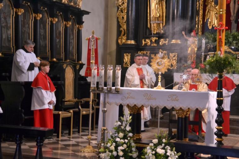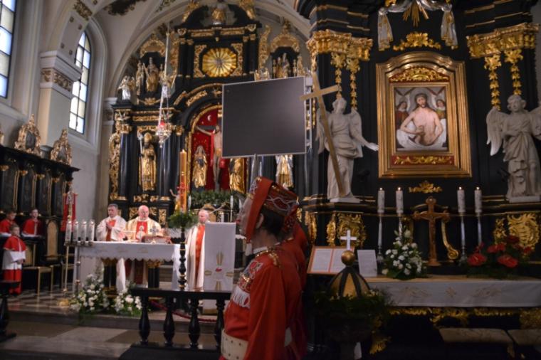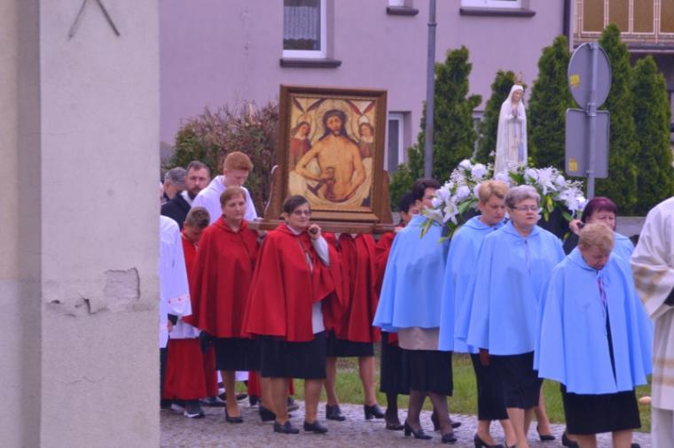Jezu, dzisiaj twoje święto gdzie od wieków w Wieruszowie jesteś wielbiony w swoim Pięciorańskim obrazie - prosimy Cię mniej miłosierdzie dla nas i dla całego Świata.Uroczystości odpustowe w wieruszowskim sanktuarium ubogacając swoim śpiewem chór Lira oraz pełnili honorową wartę halabardziści ubrani swój galowy strój. Były obecne relikwie, które parafia posiada - św.Jana Pawła II i św.Faustyny Kowalskiej Apostołów Miłosierdzia.