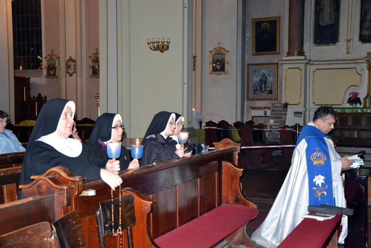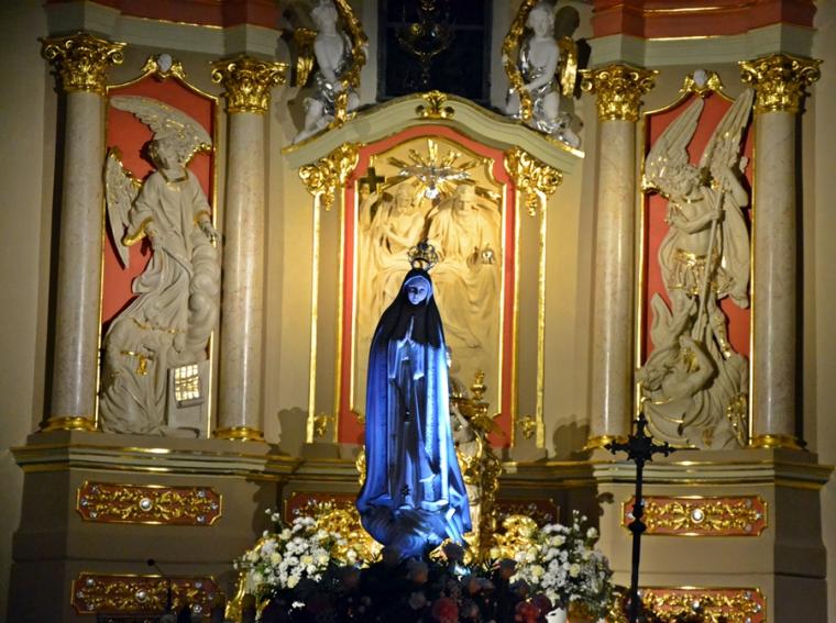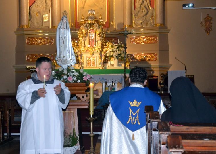 Piękny duchowo był dzień 13 października A.D. 2019 roku. Zbiegło się w nim tyle ważnych wydarzeń. Przypadł tym razem w niedzielę, dzień Pański. W tym dniu przeżywaliśmy także XIX Dzień Papieski, który tym razem przebiegał pod hasłem: „Wstańcie, chodźmy”. Wreszcie był to dzień fatimski. W niedzielny wieczór mikstacka świątynia wypełniła się wiernymi, którzy w tym szczególnym dniu przyszli na ostanie w tym roku nabożeństwo fatimskie. Nabożeństwu przewodniczył ks. kan. Krzysztof Ordziniak. Przed 102 laty miało miejsce szóste objawienie fatimskie. Przy pięknie ozdobionej kwiatami figurze Matki Bożej Fatimskiej ustawionej w środkowej nawie płonęła świeca. To od niej, po zakończeniu trzeciej tajemnicy, ministrant odpalił świeczkę i zaniósł płomień jej wiernym zebranym w kościele. Na początku ks. proboszcz przybliżył zebranym okoliczności szóstego objawienia się Fatimskiej Pani. W czasie tego objawienie Maryja powiedziała do Łucji: „chcę ci powiedzieć, żeby zbudowano tu na moją cześć kaplicę. Jestem Matką Boską Różańcową. Trzeba w dalszym ciągu codziennie odmawiać różaniec”. Zapowiedziała także zakończenie wojny. We wrześniu Maryja zapowiadała „ w październiku przybędzie również Nasz Pan, Matka Boża Bolesna i z Góry Karmelu, św. Józef z Dzieciątkiem Jezus, żeby pobłogosławić świat”. Z relacji zgromadzonych wynikało, że zobaczyli św. Józefa z Dzieciątkiem Jezus i Maryją. Święty Józef z Dzieciątkiem błogosławili świat wykonując ręką znak w kształcie krzyża. Podczas tego objawienia miał miejsce cud słońca. W jego atmosferę wprowadziły nas przytoczone przez ks. kanonika opisy prasowe z tamtego okresu. Nawiązując do słów Ewangelii, które Kościół przeznaczył na XXVIII niedzielę ks. kan. Krzysztof zachęcał zebranych, by ta modlitwa różańcowa była naszym dziękczynieniem za pontyfikat św. Jana Pawła II, za Jego przykład umiłowania Maryi, ale także za ocalenie Go podczas zamachu. W modlitwie polecaliśmy także naszą ojczyznę. Był też czas, by w cichości serca przedstawić Pani z Fatimy nasze osobiste intencje, zarówno podziękowania jak i prośby, z którymi przyszliśmy na modlitewne spotkanie.Rozważaliśmy tajemnice chwalebne różańca. Kontemplacja każdej tajemnicy zakończone było postanowieniem. W pierwszej tajemnicy rozważaliśmy Zmartwychwstanie Pana Jezusa. Postanowienie, które wybrzmiało po rozważeniu tej tajemnicy zachęcało nas do ożywienia w sobie życia nadprzyrodzonego poprzez częste korzystanie z sakramentów świętych. W drugiej tajemnicy rozważaliśmy Wniebowstąpienie Jezusa. Ważne dla naszego duchowego rozwoju postanowienie wybrzmiało po rozważaniu drugiej tajemnicy chwalebnej. Zachęcało ono do unikania najmniejszego grzechu i zgadzania się zawsze z wolą Bożą. W kolejnej tajemnicy rozważaliśmy Zesłanie Ducha Świętego. Po tej tajemnicy popłynęły do zebranych słowa zachęty do codziennej modlitwy do Ducha Świętego. Po czwartej tajemnicy wybrzmiały następujące słowa postanowienia: „ Dozwól Panno Święta, bym Cię godnie chwalił. Udziel mi mocy przeciw Twoim wrogom". Rozważając piątą tajemnicę uczestniczący w nabożeństwie usłyszeli słowa zachęty do tego, by uczynili Maryję Królową swoich serc. Następnie odmówiliśmy modlitwę Anioła z Fatimy do Trójcy Przenajświętszej, by po jej zakończeniu za krzyżem i figurą Matki Bożej ze śpiewem „ Z dalekiej Fatimy…”, z płonącymi lampionami wyruszyć w procesji wokół kościoła. Z wieży rozległo się bicie dzwonów. Był to znak, że właśnie wybiła godzina 21:00 i czas na Apel Jasnogórski, który zaśpiewaliśmy w łączności z Jasną Górą- duchową stolicą Polski. Ksiądz kanonik udzielił wszystkim błogosławieństwa. Potem otoczyliśmy figurę Fatimskiej Pani i zaśpiewaliśmy kołysankę „Zapada zmrok…”. Piękny duchowo dzień 13 października za nami…