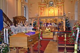 Kończąc homilię ks. biskup Ignacy powiedział: „Spoczywaj w pokoju dobry kapłanie, przyjacielu, Boga, człowieka, stron rodzinnych, prawdy, dobra i piękna. Przyjacielu mądrości i radości. Dołącz do grona świętych mężów w niebie. Niech Maryja, którą miłowałeś na ziemskich drogach Twojego życia niech Cię teraz przytuli do swojego matczynego serca i zaprowadzi do Jezusa. Wierzymy, że swoją chorobą, cichym cierpieniem spłaciłeś już dług swoich słabości i znajdziesz Boże miłosierdzie, któremu zawsze ufałeś. My się dziś za Tobą wstawiamy w tej świątyni przed Panem i mówimy spoczywaj w pokoju. Do zobaczenia w wieczności. Amen”.