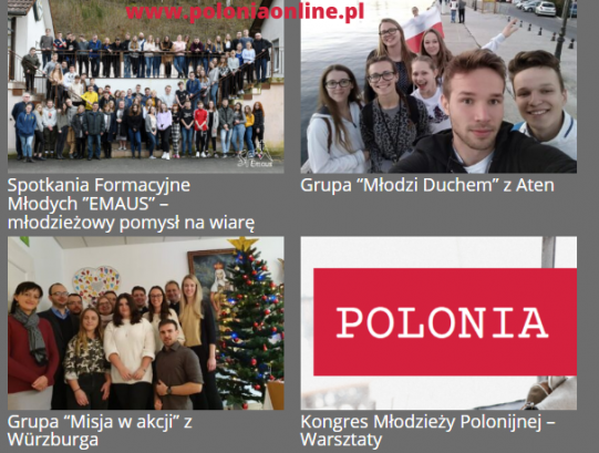 PROJEKT POLONIA ONLINE - skierowany jest do młodzieży polonijnej z całego świata. Celem projektu jest tworzenie wspólnej platformy spotkań i dzielenia się działalnością prowadzoną przez młodzież polonijnej całego świata. Na stronie znajdziesz różne informacje o grupach młodzieżowych i inicjatywach podejmowanych przez młodzież polonijną.