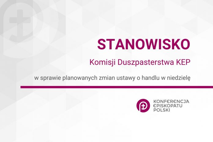 W kontekście planowanych zmian ustawodawczych dotyczących handlu w niedzielę i święta, jako Komisja Duszpasterstwa Konferencji Episkopatu Polski, ufając, że wespół ze wspólnotą wierzących obywateli naszego kraju, opowiadamy się za zachowaniem aktualnej ustawy o handlu w niedzielę z 2018 r. Podkreślamy, że nie oznacza ona całkowitego zakazu handlu w te dni i nie powoduje braku dostępu do produktów pierwszej potrzeby.