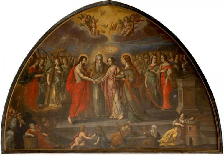 "Zaślubiny Chrystusa z Kościołem" obraz Andrzeja Stecha (XVII w.) w krużgankach Bazyliki katedralnej w Pelplinie