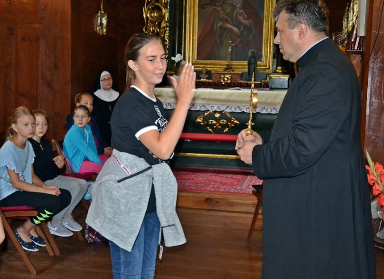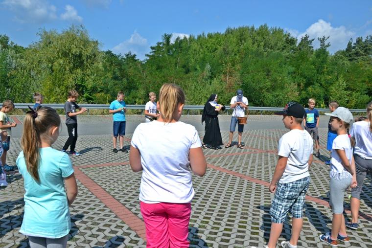 Można powiedzieć, że stało się już tradycją w mikstackiej wspólnocie, że w dniach poprzedzających uroczystości odpustowe ku czci św. Rocha z obrzędem błogosławieństwa zwierząt ks. kan. Krzysztof Ordziniak kustosz sanktuarium zaprasza młodych do szkoły. Spieszymy z wyjaśnieniem, że jest to Szkoła Rochowa, niezwykła, łącząca w sobie wiele elementów takich jak modlitwa, śpiew, nauka, zabawa, spotkania w ciekawymi ludźmi. Trzeba dodać, że czyni to chyba w sposób dla młodych atrakcyjny skoro mimo wakacji chętnie do niej przychodzą. Pierwszy dzień w Rochowej Szkole przebiegał pod hasłem: „Chrzest jako brama Kościoła”. Podczas spotkania ks. kan. Krzysztof Ordziniak poprowadził modlitwę nowennową z dziećmi oraz zapoznał je z pierwszym okresem życia patrona sanktuarium. Zwrócił uwagę na słowa testamentu duchowego pozostawionego mu przez ojca. Był także czas na rozmowę z dziećmi o dziedzictwie, tym należącym do nich, do ich rodzin. Ponadto ks. kan. Krzysztof wyjaśnił ideę spotkań w Rochowej Szkole w tym wyjątkowym dla mikstackiej wspólnoty parafialnej czasie. Piękna pogoda zachęcała do zabawy na świeżym powietrzu. Ich organizacją zajęła się s. Małgorzata. Jak w prawdziwej szkole były i zadania domowe. Ksiądz kustosz poprosił dzieci, by wypisały prośby i podziękowania do modlitwy nowennowej.