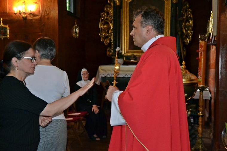 Piękne duchowo są te przedodpustowe dni w Diecezjalnym Sanktuarium Świętego Rocha w Mikstacie , wypełnione modlitwą, udziałem w Eucharystii, zasłuchaniem w słowo Boże i pochylaniem się nad bogactwem myśli przekazywanych w naukach rekolekcyjnych. Trzeci dzień nowenny przypadł w piątek. O godz. 18:00 została odmówiona koronka do miłosierdzia Bożego. Po koronce w sanktuarium wybrzmiały Godzinki o Świętym Rochu Wyznawcy. Następnie rozpoczęła się msza św. Przy ołtarzu stanął głoszący nauki rekolekcyjne ks. Sebastian Łagódka wraz z kustoszem miejsca, ks. kan. Krzysztofem Ordziniakiem. Rozpoczynając konferencję ksiądz rekolekcjonista zaznaczył, że wpatrujemy się w świętego Rocha, który był doskonałym uczniem Chrystusa. Ponieważ Chrystus był jego mistrzem i nauczycielem rezygnował z wielu spraw należących do świata, aby nie przeszkadzały mu w zdobywaniu Bożej mądrości. Kontynuując ksiądz Sebastian pytał: co to znaczy być uczniem Chrystusa. Zaznaczył, że by być uczniem Chrystusa trzeba pójść za Nim. Celebrans zwrócił uwagę, że każdy z nas przez sakrament chrztu jest wezwany do tego by być uczniem Chrystusa- dodał - że jest to warunek zbawienia. Ksiądz rekolekcjonista zaakcentował, że istotą bycia uczniem Chrystusa jest podążanie za Jezusem. Kontynuując kapłan przywołał przykład dobrego pasterza za którym podążają owce, bo znają głos pasterza, ufają mu. Pasterz nigdy nie chce krzywdy swoich owiec – dodał. W dalszej części konferencji powiedział: „ Pasterz idzie pierwszy, ci którzy są jego uczniami idą za nim. I dlatego Pan Jezus powie w swojej Ewangelii do uczniów ja jestem drogą, ja jestem prawdą i ja jestem życiem. Tak jakby chciał powiedzieć nam: naucz się chodzić tą drogą, wsłuchuj się w prawdę, którą będę ci mówił, abyś osiągnął prawdziwe życie”. Jak zaakcentował kaznodzieja św. Roch realizował to wskazanie i podążał zawsze za Chrystusem, mimo że, wiązało się to z wieloma wyrzeczeniami i trudnymi doświadczeniami. Święty Roch wierzył, że nie ma innej drogi, ani nie ma innej prawdy niż ta, którą ma Bóg. Ksiądz rekolekcjonista zaakcentował, że szczególnie w czasach współczesnych trzeba sobie często o tym przypominać. Podkreślił, że trzeba nieustannie wsłuchiwać się w prawdę i być posłusznym prawdzie, posłusznym Bogu. Jednocześnie celebrans zaznaczył, że w czasach współczesnych człowiek ma problem z posłuszeństwem. Wynika to z faktu, że każdy chce być niezależny. Trudno być posłusznym powiedział kaznodzieja, ale posłuszeństwo jest jednym ze znaków bycia uczniem Chrystusa. Istotą grzechu jest brak posłuszeństwa Bogu, dodał ksiądz rekolekcjonista. Jednocześnie zaznaczył, że posłuszeństwa trzeba się uczyć, by być uczniem Chrystusa. Ksiądz Sebastian wyjaśnił zebranym w mikstackim sanktuarium, że ważne jest by to posłuszeństwo wynikało z zaufania Bogu. Zachęcał, byśmy prosili św. Rocha o umiejętność bycia posłusznymi Bogu w zaufaniu. Podkreślił, że ważne byśmy mieli w sobie ducha posłuszeństwa i ducha zaufania. Następnie ksiądz rekolekcjonista przeczytał wiersz ks. Jana Twardowskiego „Zaufałem drodze”. To ulubiony poeta celebransa, a przytoczony wiersz- jak powiedział- patronuje mu na drodze jego wiary. Ks. Sebastian zakończył piątkową konferencję słowami: „ Zaufałem drodze, tą drogą jest Chrystus, zaufałem prawdzie, tą prawdą jest Chrystus, bo ufam i chcę żyć, prawdziwie nie tylko tu, ale wiecznie, a tym życiem też jest Chrystus”. Dziękujemy księdzu rekolekcjoniście za słowa do nas skierowane, za kolejne cenne wskazania, które będą pomocne w przemianie naszego życia, w naszym podążaniu Bożym drogami. Kolejna nauka rekolekcyjna zapewne wielu zmobilizowała do rachunku sumienia z naszego zaufania i posłuszeństwa Panu Bogu. Potrzebujemy takich chwil refleksji, zatrzymania, wskazówek do pracy nad sobą, po to by wybrać Jezusa, który jest drog, prawdę, życiem, bo w każdym z nas jest tęsknota za życiem wiecznym.
