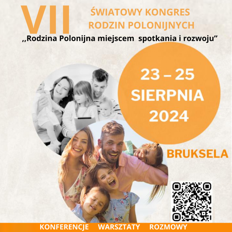 W dniach od 23 – 25 sierpnia 2024 roku odbędzie się w Brukseli VII Światowy Kongres Rodzin Polonijnych zatytułowany: „Rodzina polonijna – miejscem spotkania i rozwoju”. W czasie Kongresu zostaną podjęte zagadnienia związane z budowaniem i umacnianiem dojrzałych relacji małżeńskich i rodzinnych, komunikacji i rozwiązywania konfliktów, reemigracji oraz tematy dotyczące wychowania i wspierania rozwoju dzieci i młodzieży