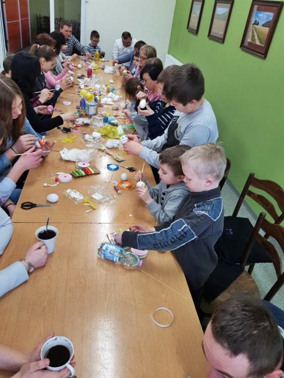 Mimo niekorzystnej pogody do salki Domu Ludowego w Lutogniewie przybyli na zaproszenie Grupy Charytatywnej i ks. proboszcza Łukasza Żurawskiego młodsi i starsi.  Część przyniosła własne materiały, część skorzystała z przygotowanych przez Grupę Charytatywną. Co wato podkreślić, przybyły całe rodziny. Była to więc okazja od integrowania się rodzin, ale także wspólnoty parafialnej. W salce spotkały się trzy pokolenia. Młodsi mieli okazje do skorzystania z doświadczeń swoich rodziców i dziadków, którzy od lat samodzielnie wykonują pisanki. Dla najmłodszego pokolenia była to okazja do poznania tradycji związanych z Wielkanocą. Wykonujący pisanki zadziwiali pomysłowością i różnorodnością technik. Wszystkie pisanki były piękne, bo w ich wykonanie włożone zostało dużo serca.
